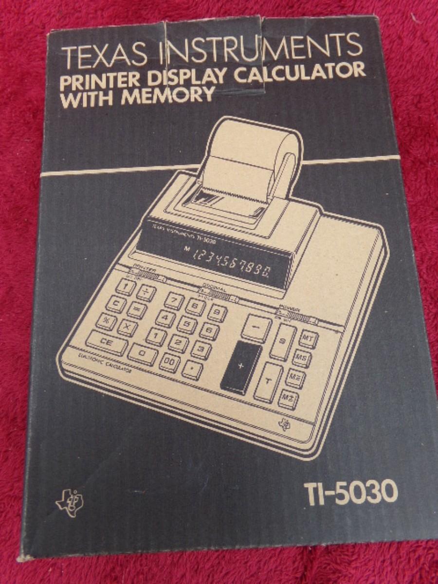 I know you don’t have one of these! TI-5030 desk top calculator w/memory. c.1983. In OEM box w/dust cover, owners manual, registration card and purchase receipt. 2 rolls paper. Power block missing. Texas Instruments was the preeminent electronics manufacturing company back in the day.