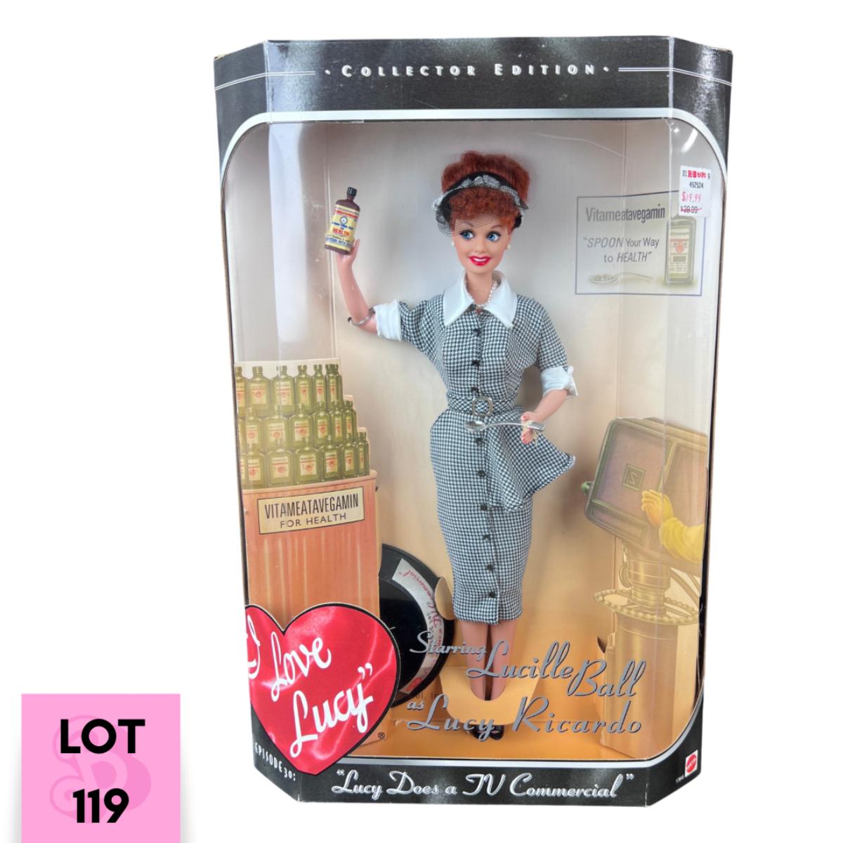 In what is arguably the most iconic episode of I Love Lucy, Lucy finally gets a gig to be in a TV Commercial. But with take after take Lucy fumbles her lines more and more until you find out what is REALLY inside VitaMeataVegemin. (It's alcohol). This doll was produced in 1997 by Mattel. This doll has not been out of its box. **|** Please see photos for details and condition. ::: Shipping is available on this lot. If you require shipping you must let us know at the close of the auction. We will coordinate with you after the item has been won. Shipping fees will include insurance up to or exceeding the value of all items being mailed. If you have any questions regarding this lot please contact the auctioneer either via this website, by direct email or by phone. PICK UP TIMES and other important information can be found in the TERMS and DESCRIPTION of the auction. Please take a look for pertinent information. Thanks!