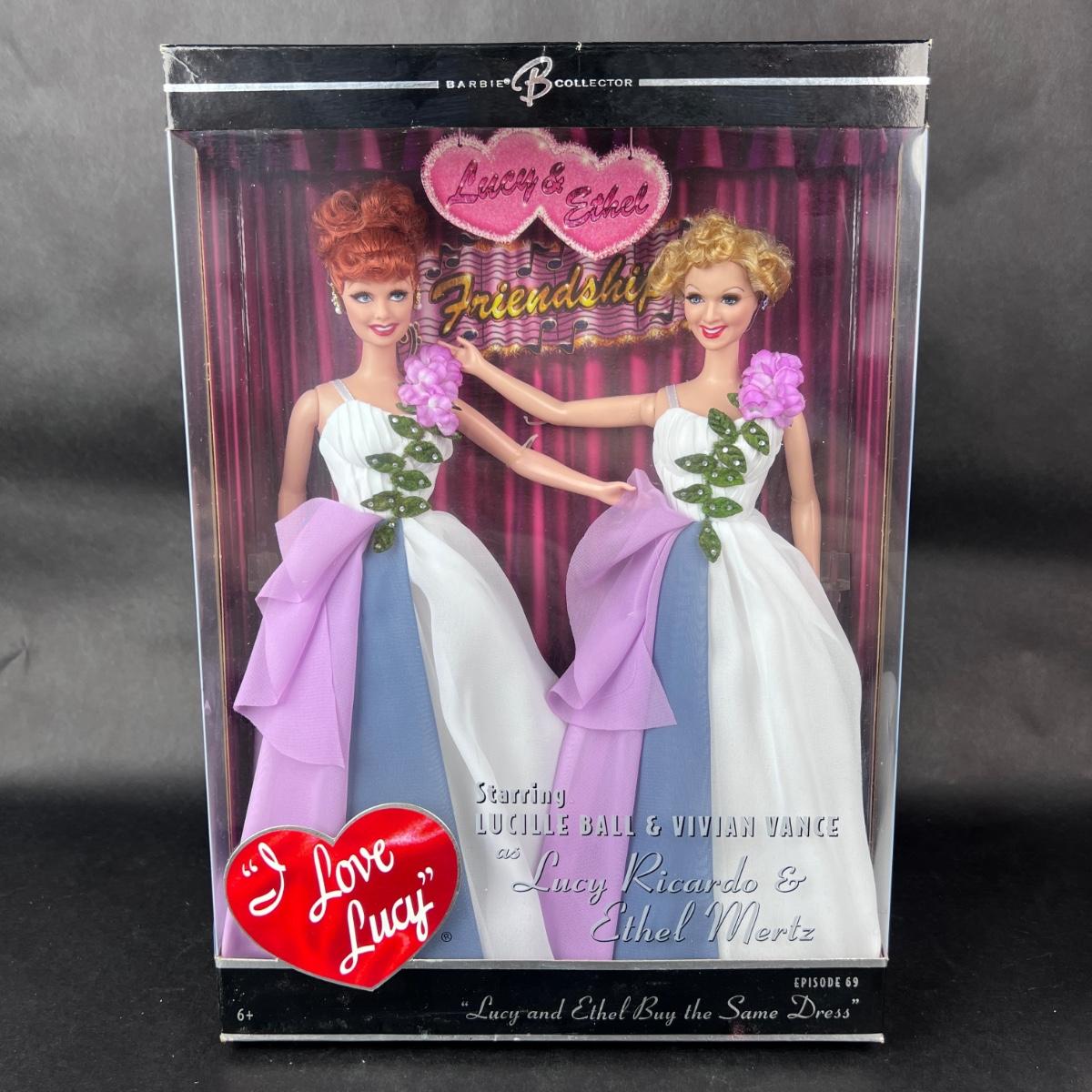 In Episode 69 Lucy and Ethel Buy The Same Dress for the show that they're performing in. This set was the FIRST Lucy and Ethel Gift Set that Mattel produced. This set was released in 2006. Neither doll has been out of its box. **|** Please see photos for details and condition. ::: Shipping is available on this lot. If you require shipping you must let us know at the close of the auction. We will coordinate with you after the item has been won. Shipping fees will include insurance up to or exceeding the value of all items being mailed. If you have any questions regarding this lot please contact the auctioneer either via this website, by direct email or by phone. PICK UP TIMES and other important information can be found in the TERMS and DESCRIPTION of the auction. Please take a look for pertinent information. Thanks!