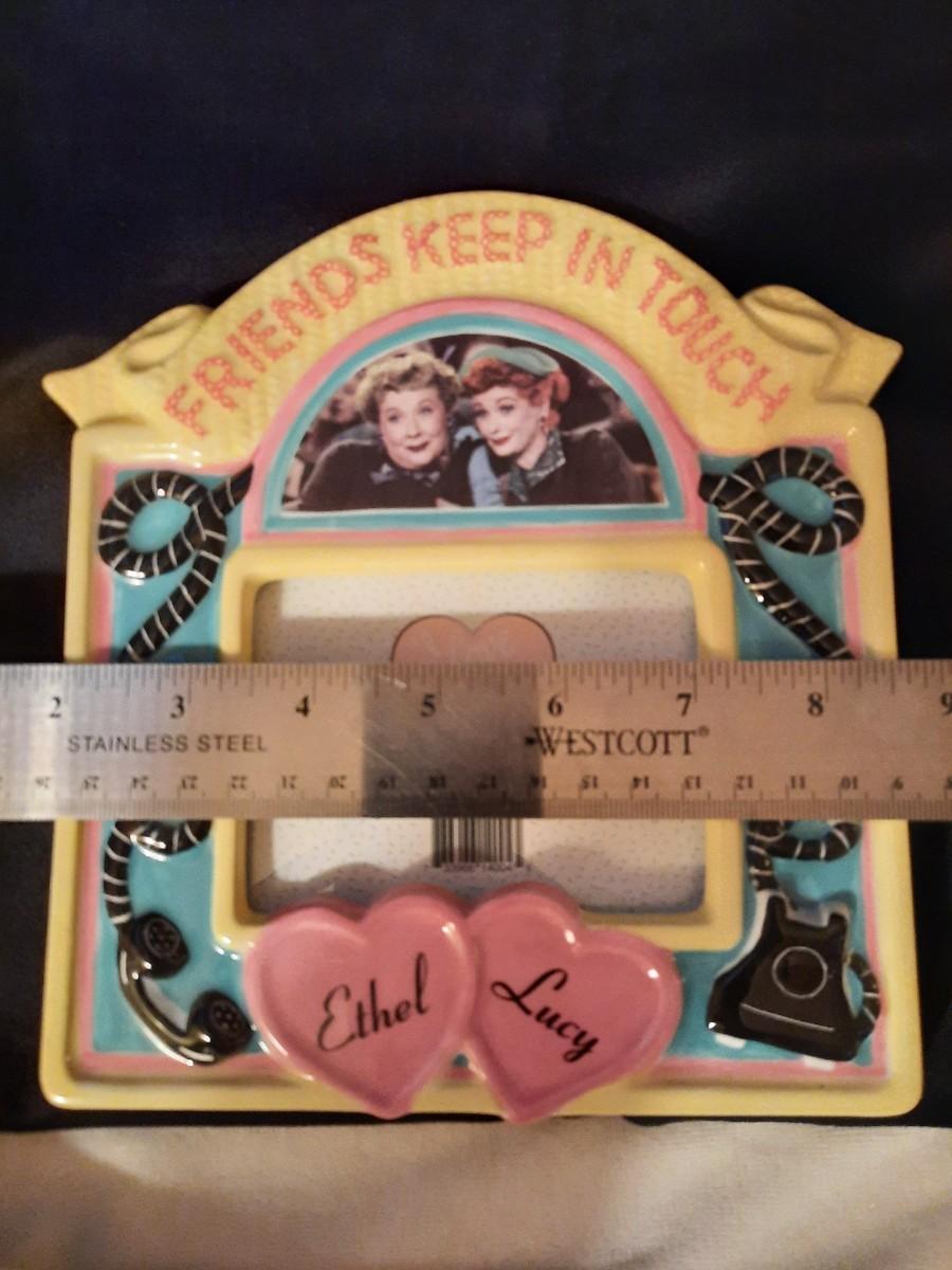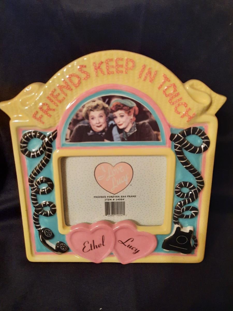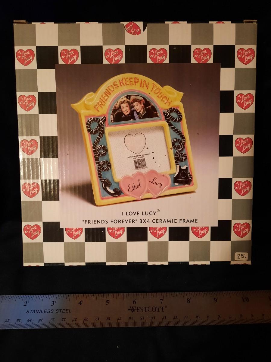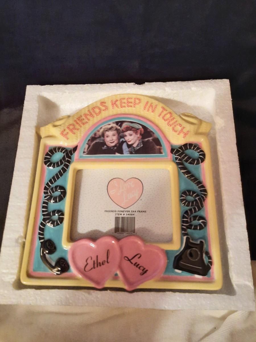 New in box ceramic "Friends Forever" picture frame featuring an image of Lucy and Ethel.