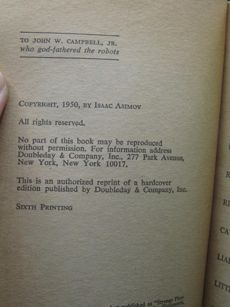 I, Robot by Isaac Asimov Vintage Dystopian Near Future Sci-Fi Signet 6th Printing Paperback