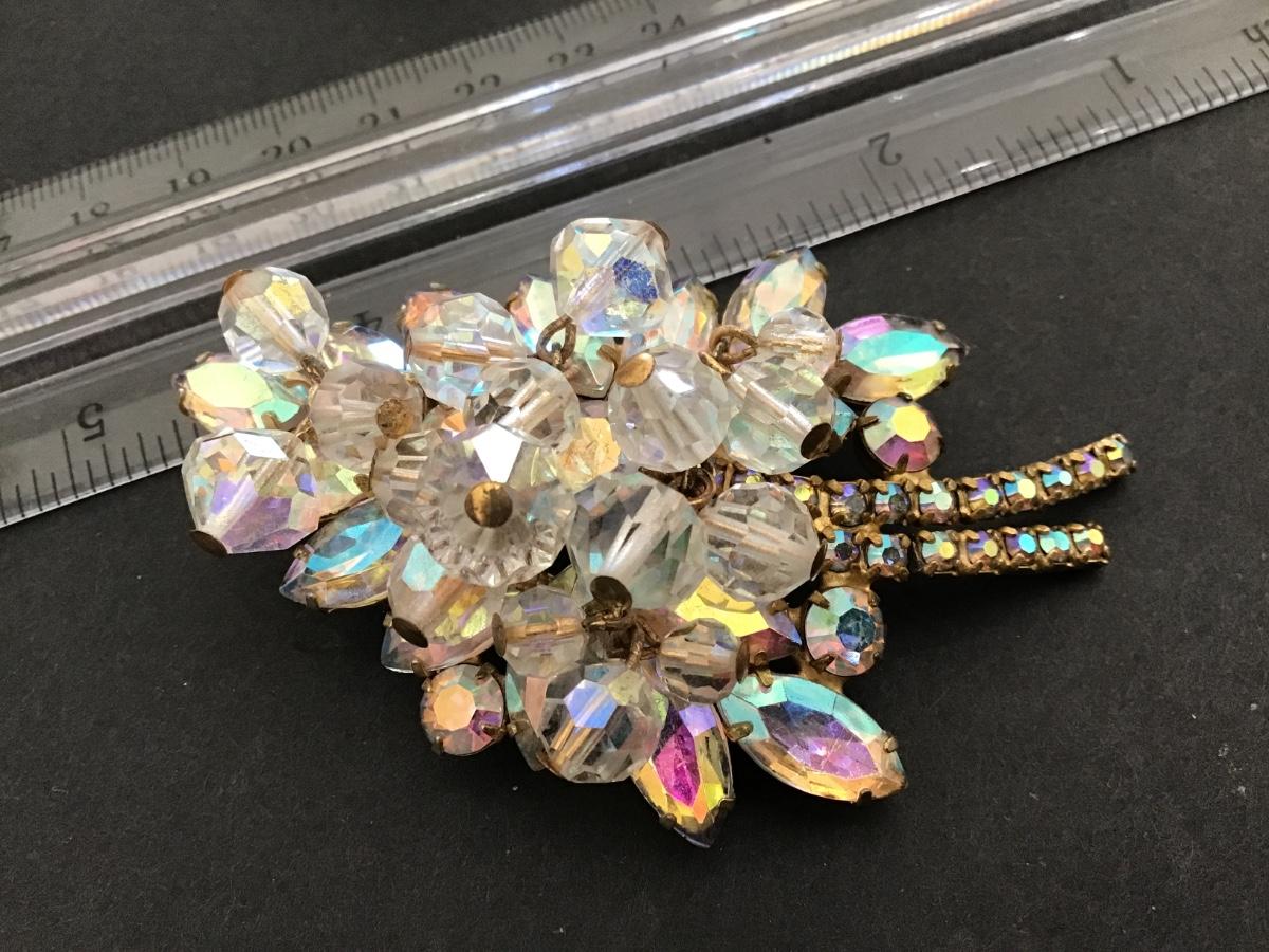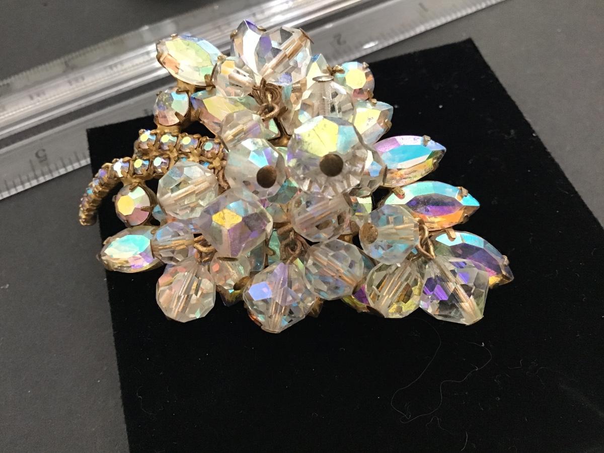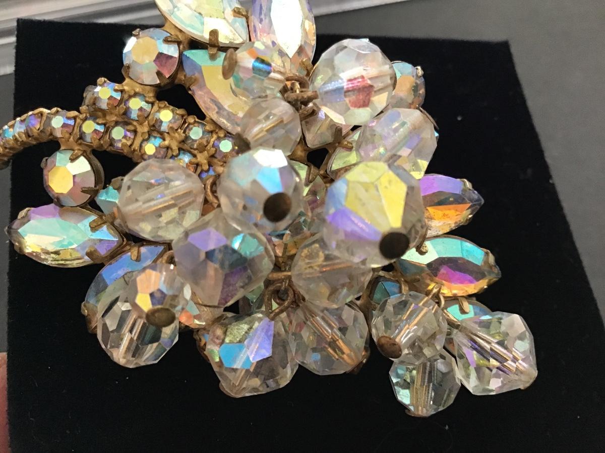 I Think This is Juliana Crystal with Aurora Borealis Dangling Leaf Brooch