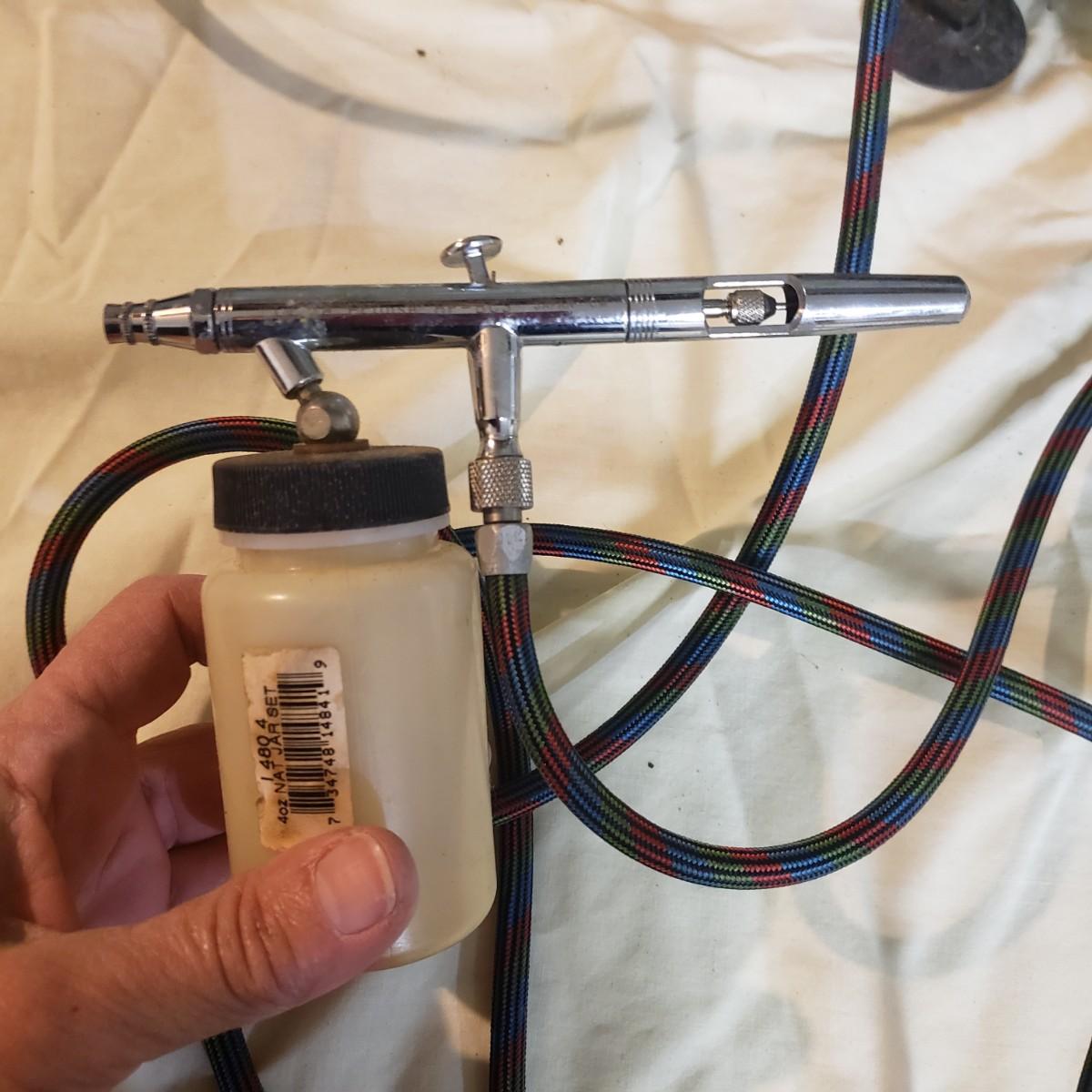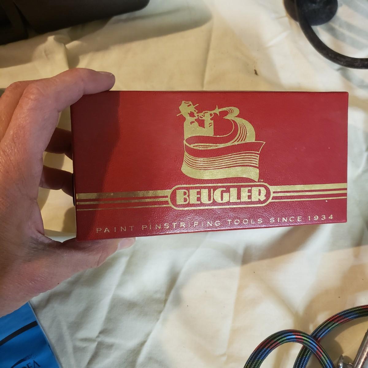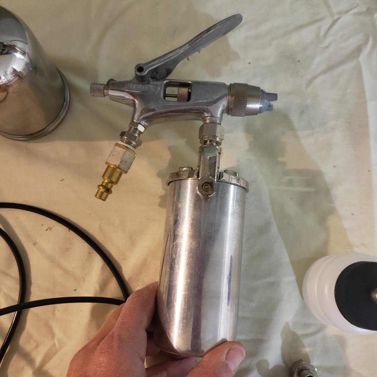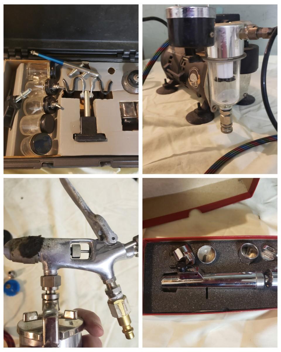 This is an Iwata air brush with many accessories. The Iwata machine measures 7" x 11" x 9"H. It comes with Omni tip, Beugler paint pinstripe tools Badger Basic Gift Set, model 200, extra hoses, spray bottles and containers. Three manuals are also included. See pictures for details.