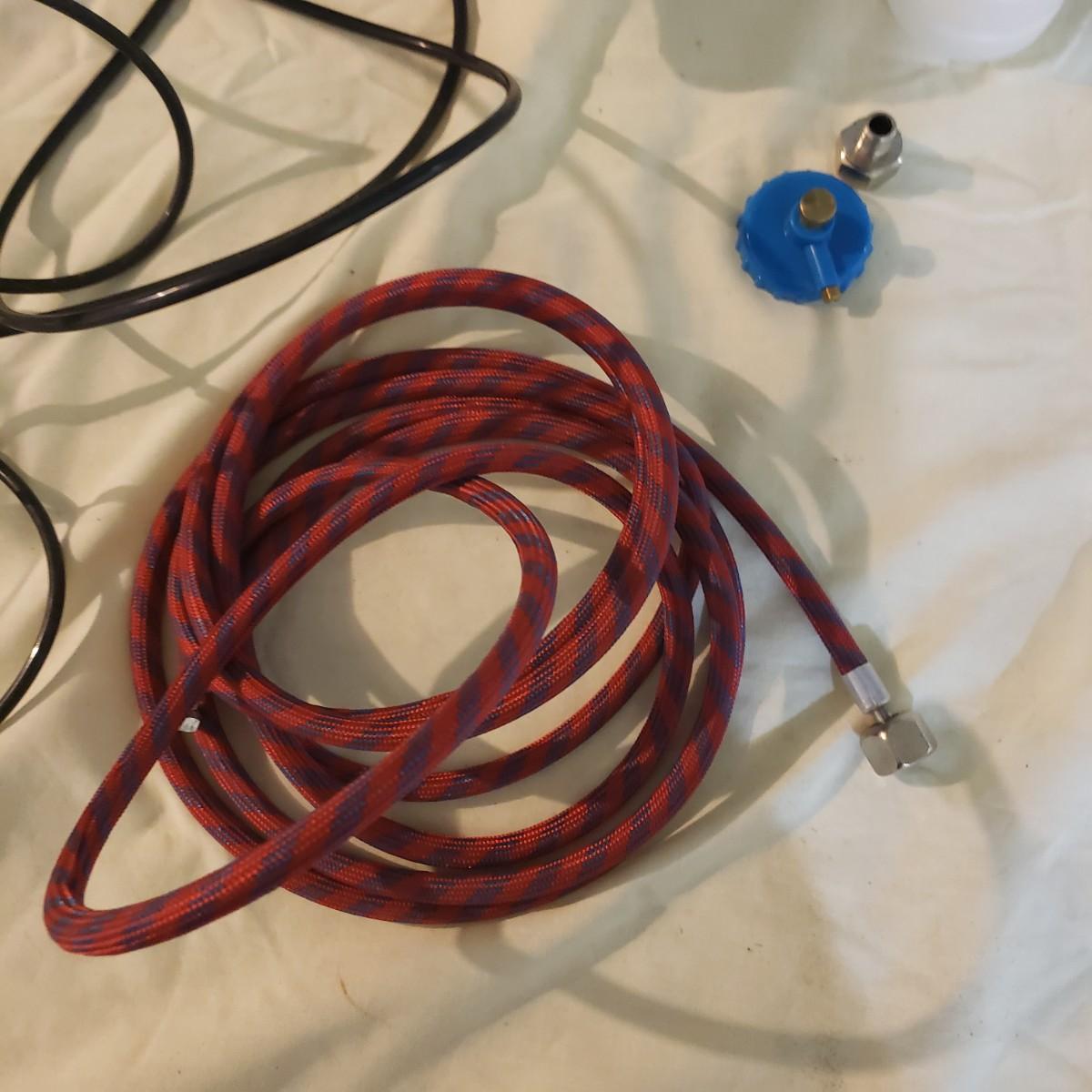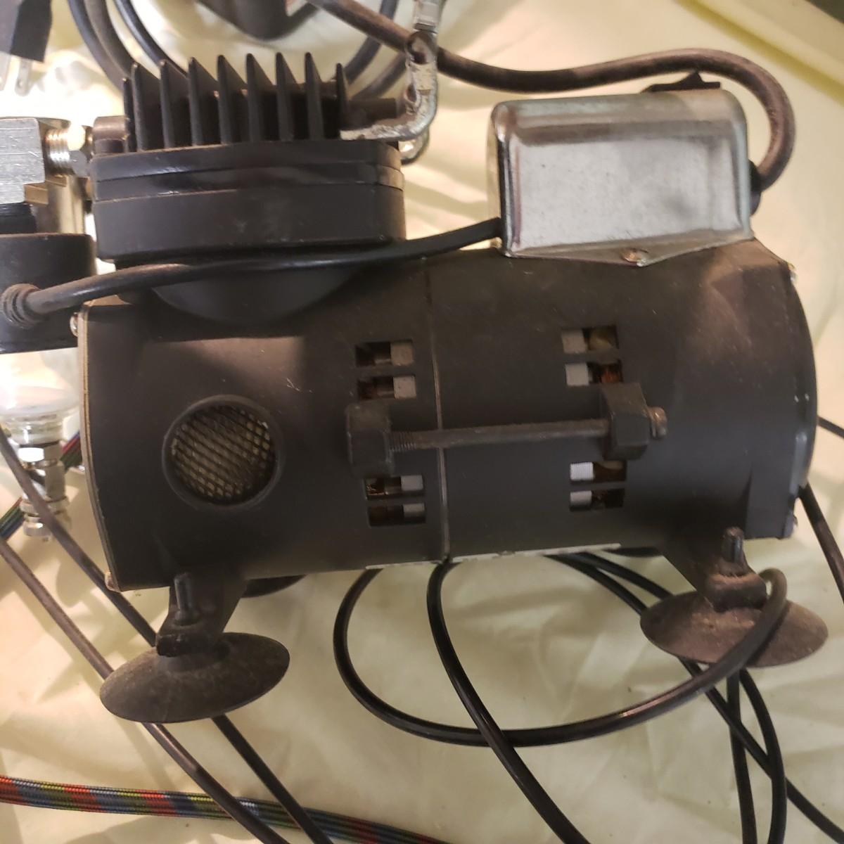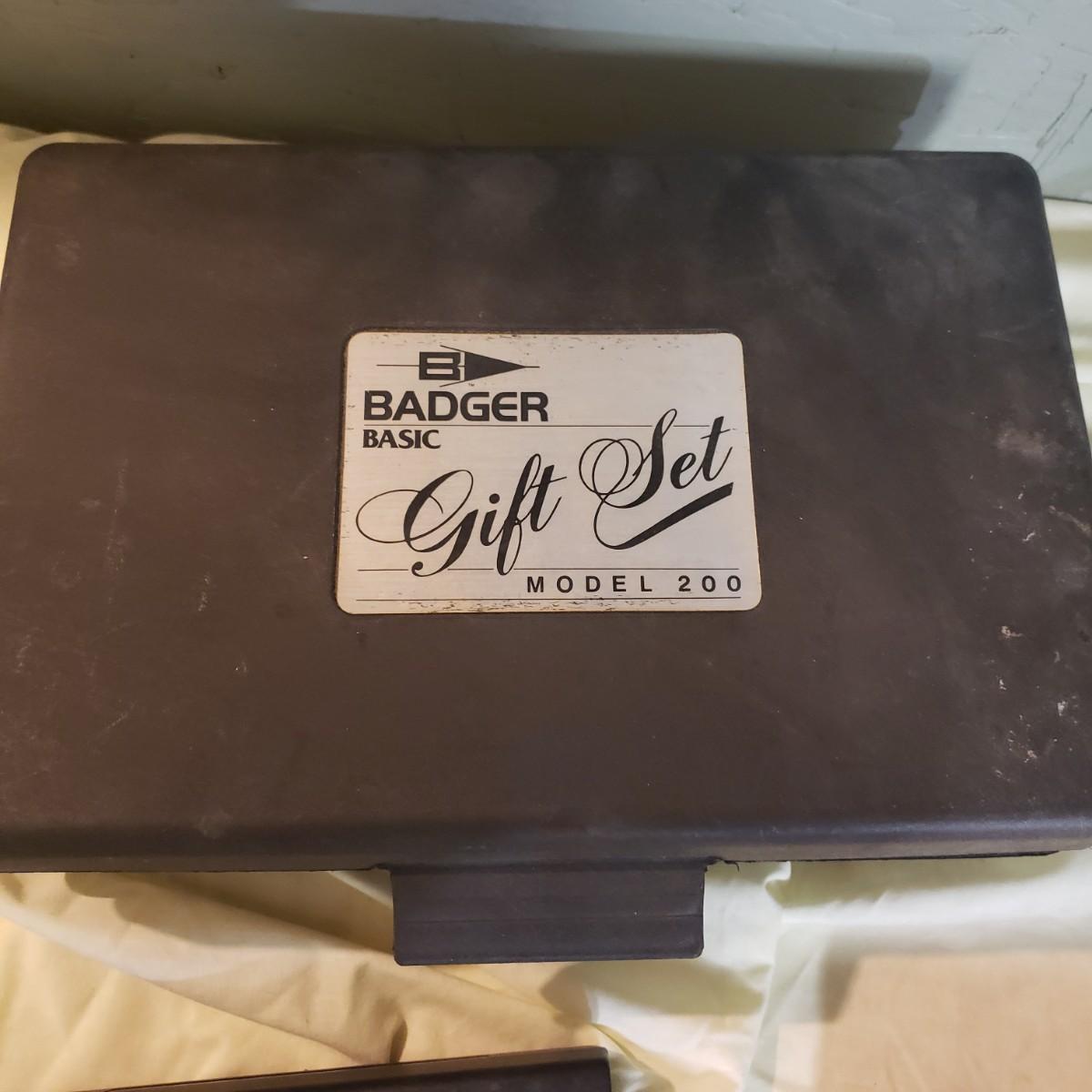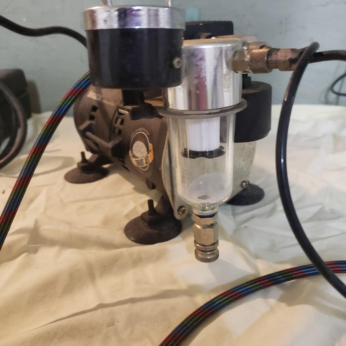 This is an Iwata air brush with many accessories. The Iwata machine measures 7" x 11" x 9"H. It comes with Omni tip, Beugler paint pinstripe tools Badger Basic Gift Set, model 200, extra hoses, spray bottles and containers. Three manuals are also included. See pictures for details.