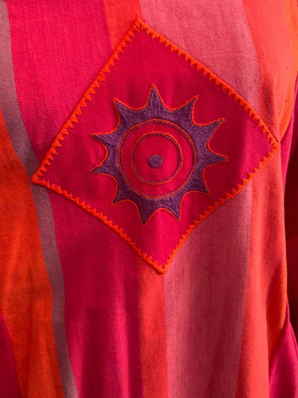 IB 12  VINTAGE 70s ORANGE/FUSHIA CAFTAN MEXICO JOSEFA STUNNING!