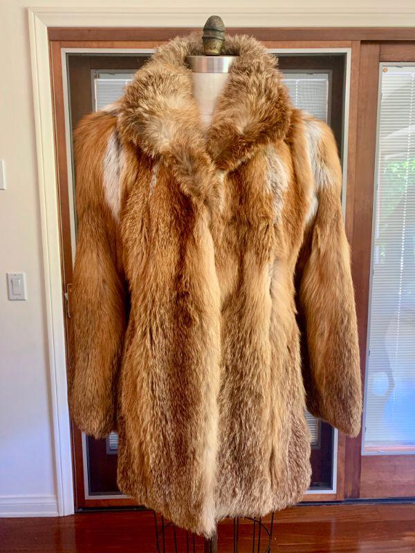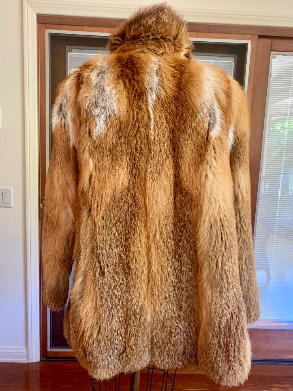 Vintage red fox fur jacket, wide collar, hip length. Size M Good condition, supple skins, not shedding.