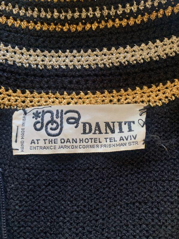 IB 32 VINTAGE BLACK KNIT CAFTAN SILVER GOLD TRIM ISRAEL