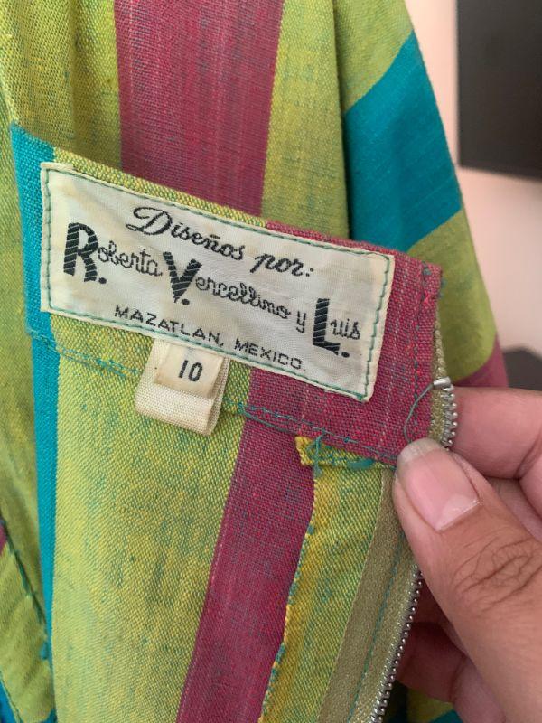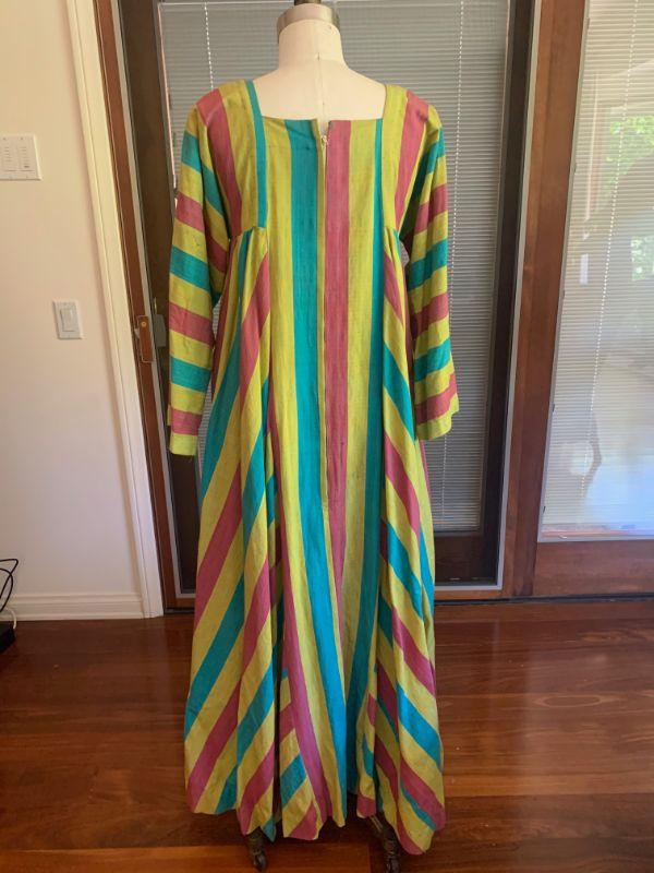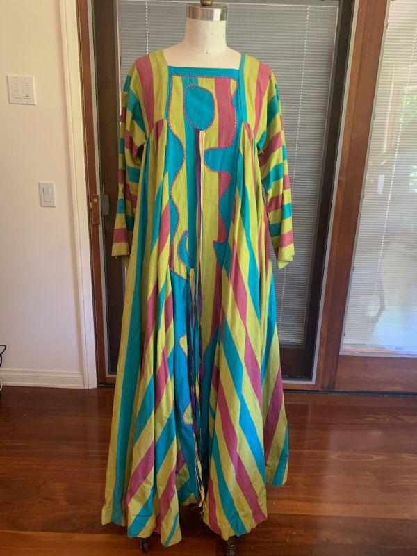 Roberta Vencellino y luis fabulous full turquoise/green & purple stripe caftan. Size 10 Made in Mazatlan, Mexico.