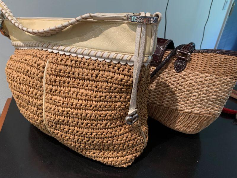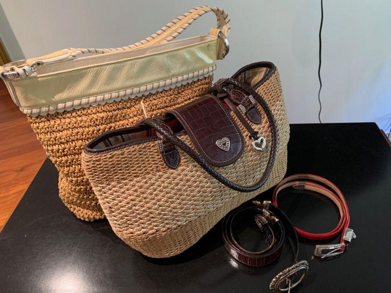 IB 58. VINTAGE DESIGNER BRIGHTON GROUP STRAW HAND BAGS & LEATHER BELTS