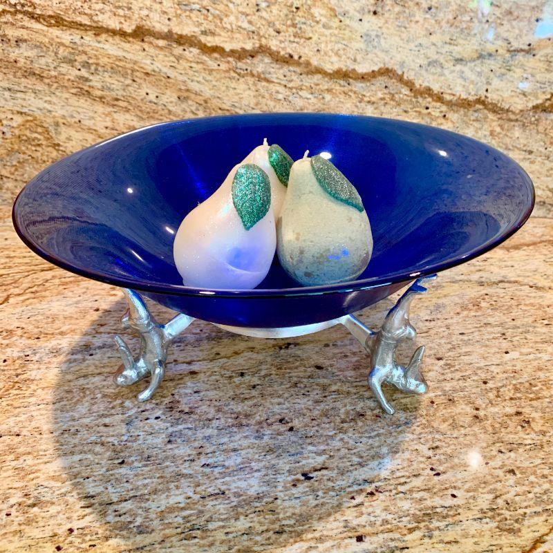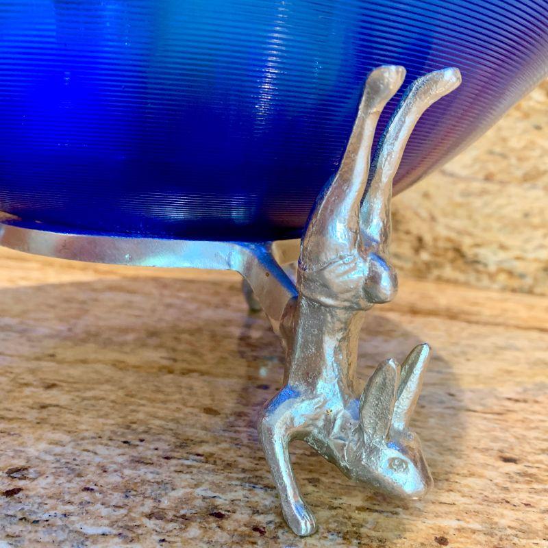 LOT 60 COBALT BLUE DECORATIVE GLASS BOWL SILVER TONE RABBIT BASE