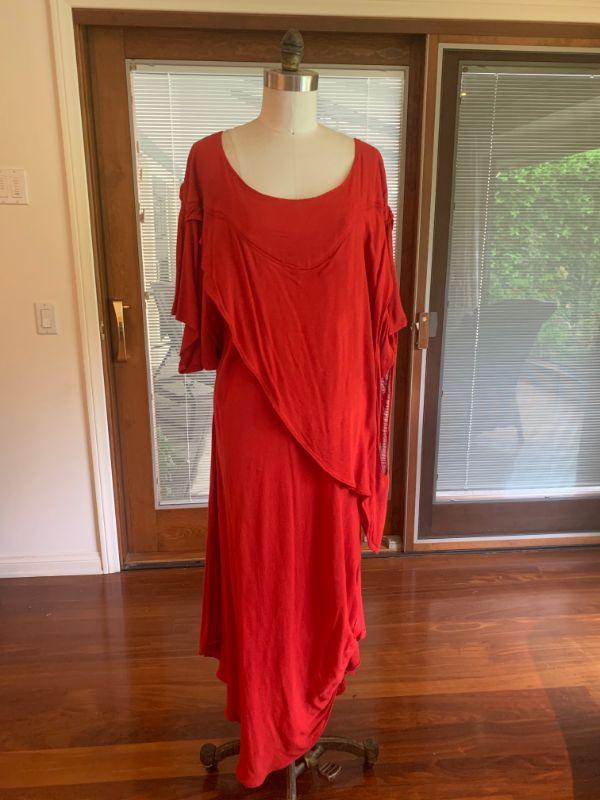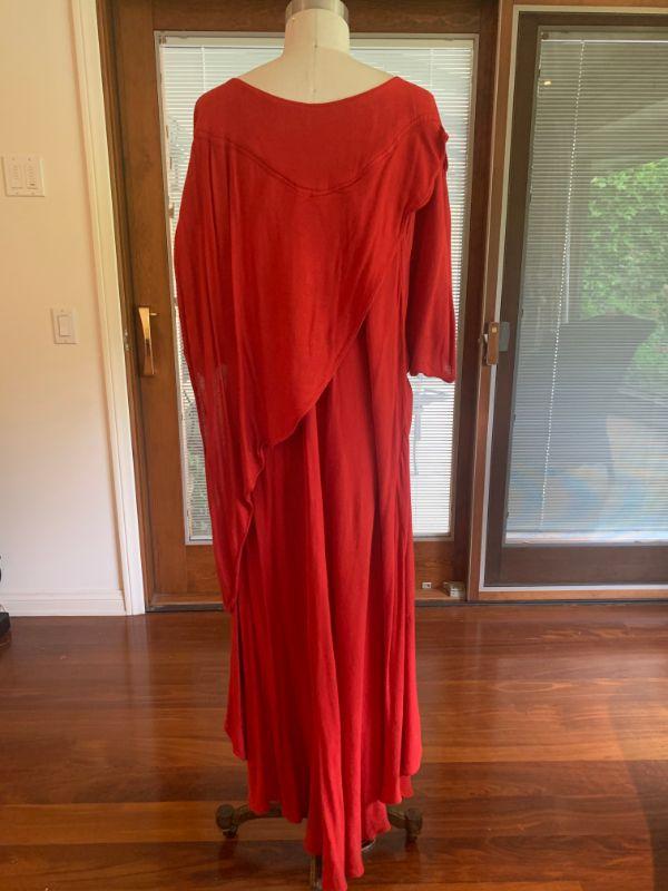 IB 66  VINTAGE COTTON/RAYON RED FLOWING LAYERED MAXI DRESS