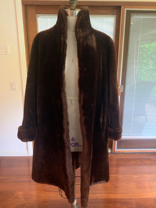 IB 69  VINTAGE BROWN MOUTON FULL LENGTH SWING FUR COAT