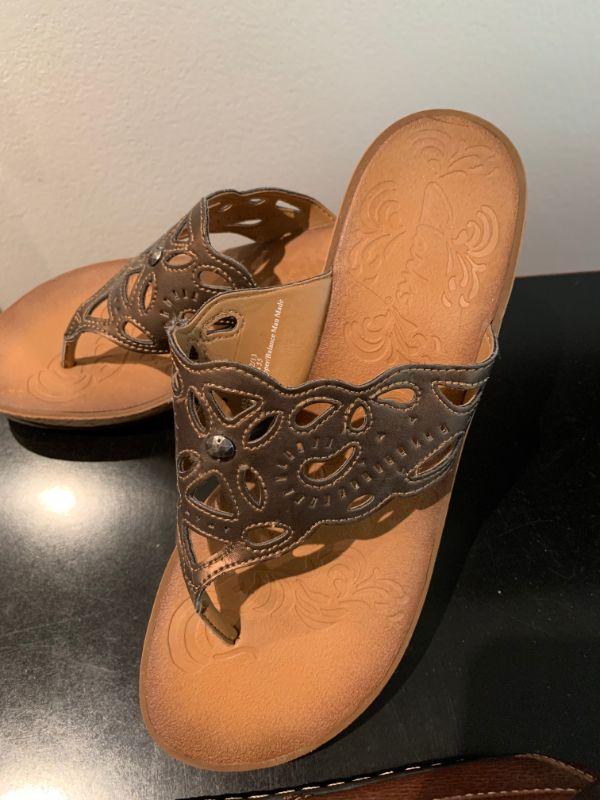 Cork wedge thong sandal with cut out band Size 9.5
