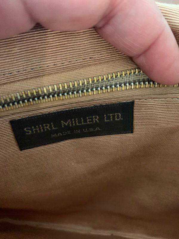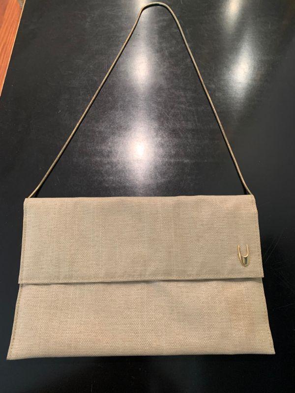 Shirl Miller, LTD. beige canvas envelope hand bag.