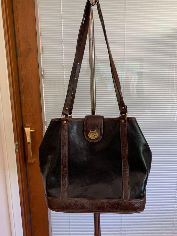 IB 92 BRAHMIN BLACK & BROWN LEATHER SHOULDER HANDBAG