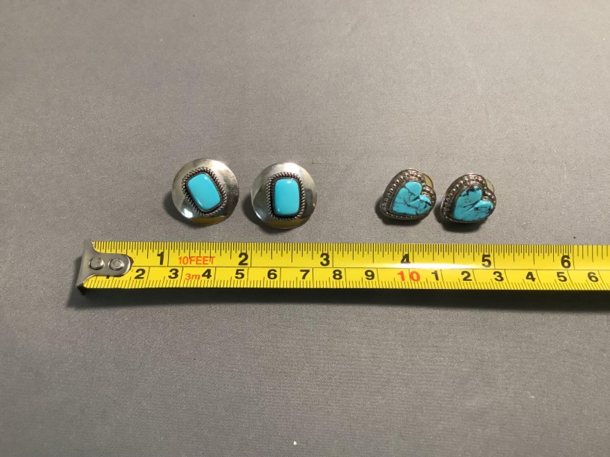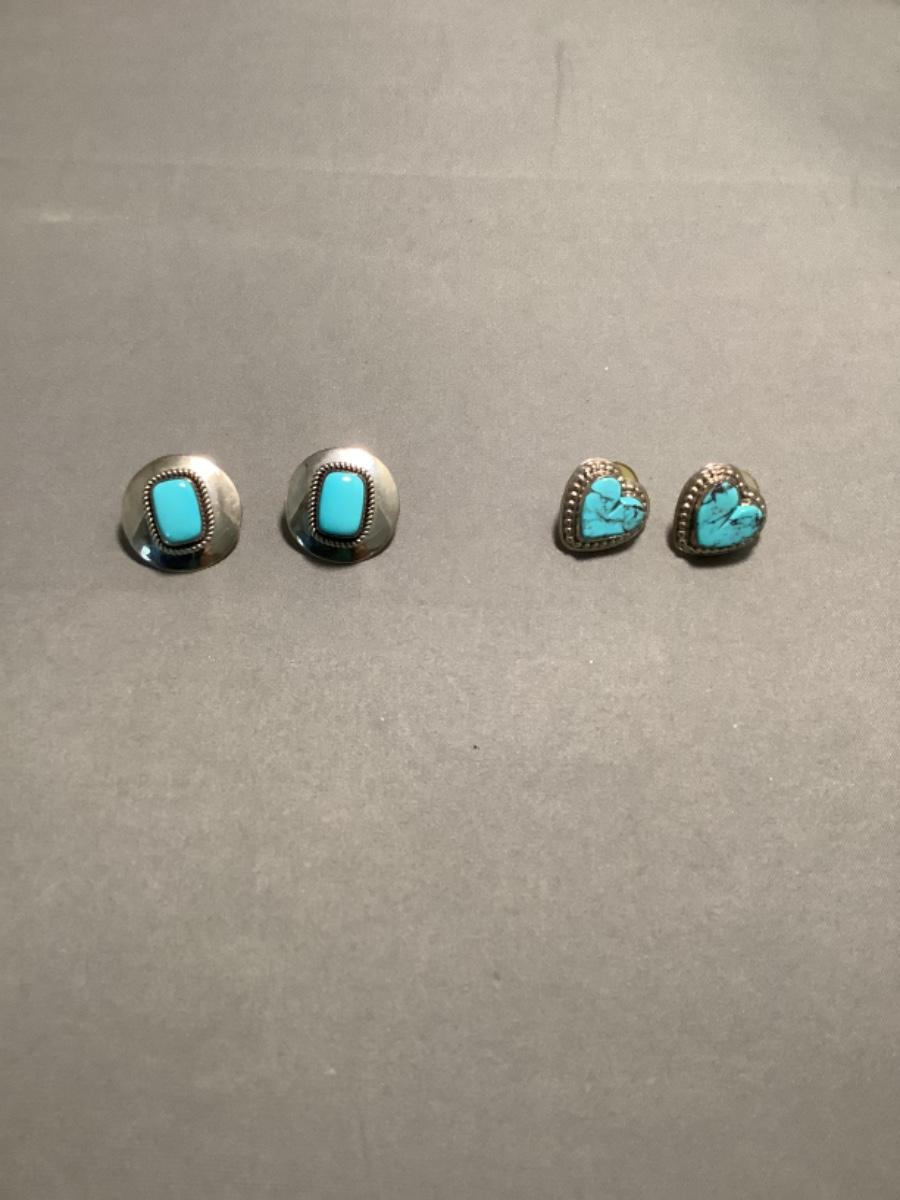 . Two Pairs of Sterling Silver & Turquoise Pierced Earrings -
