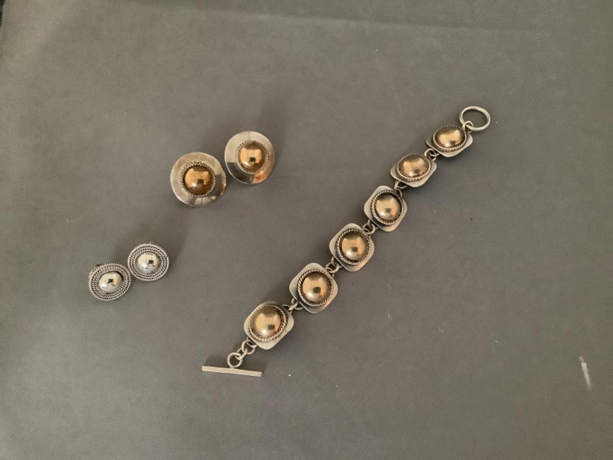 I/C1 1376 Vintage Navajo 14kt Yellow gold and Sterling Bracelet & Earring Set