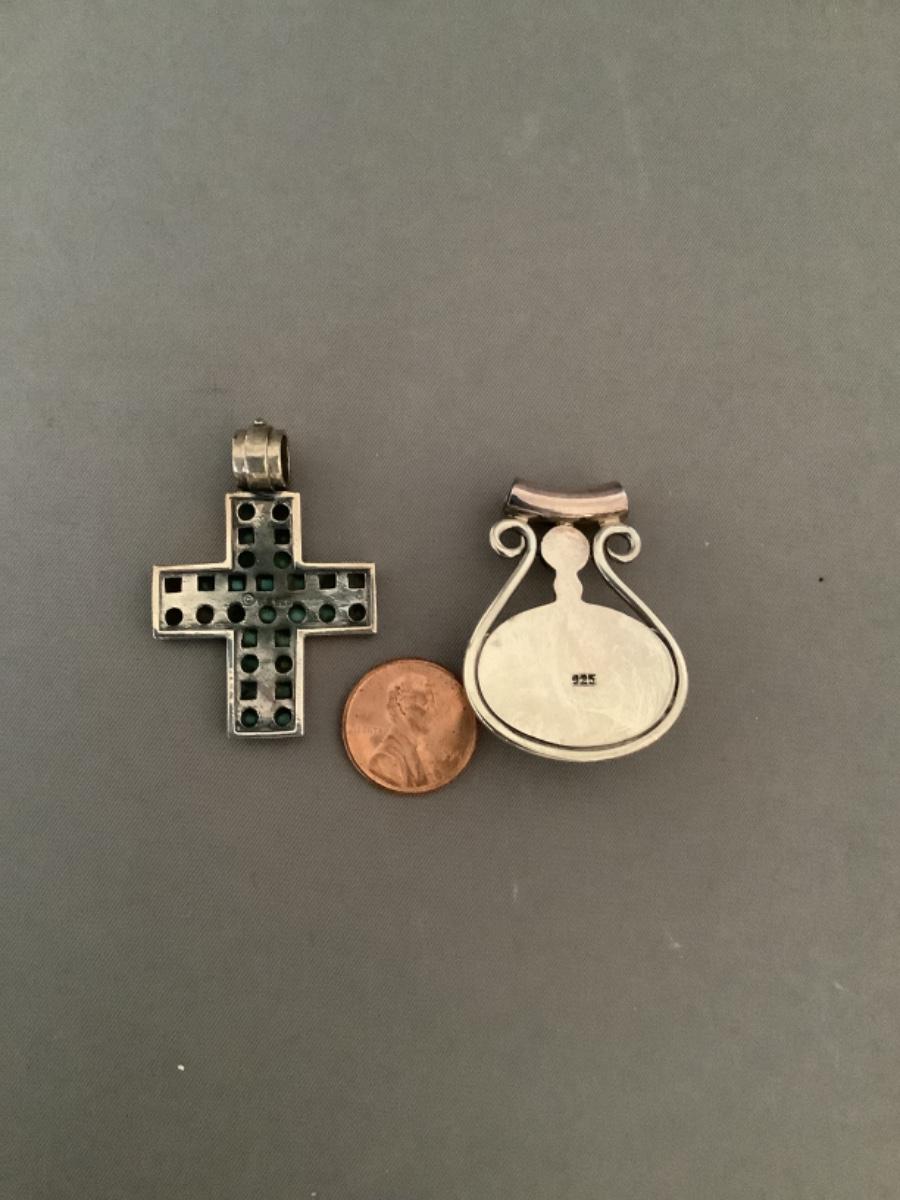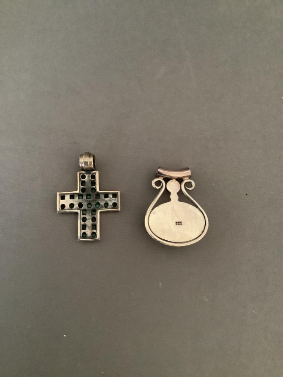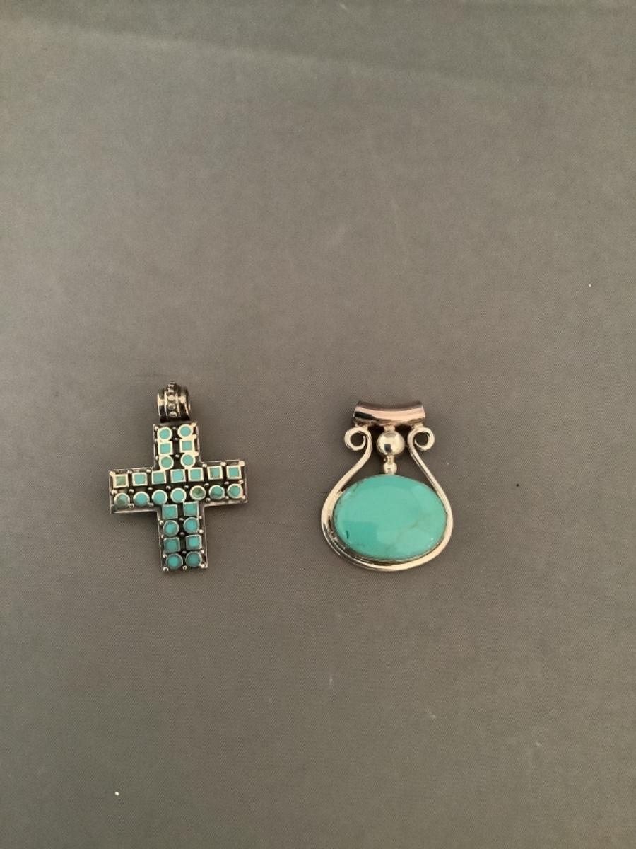 I/C1 1378 Sterling Turquoise Cross and Oval Turquoise Slide Pendant