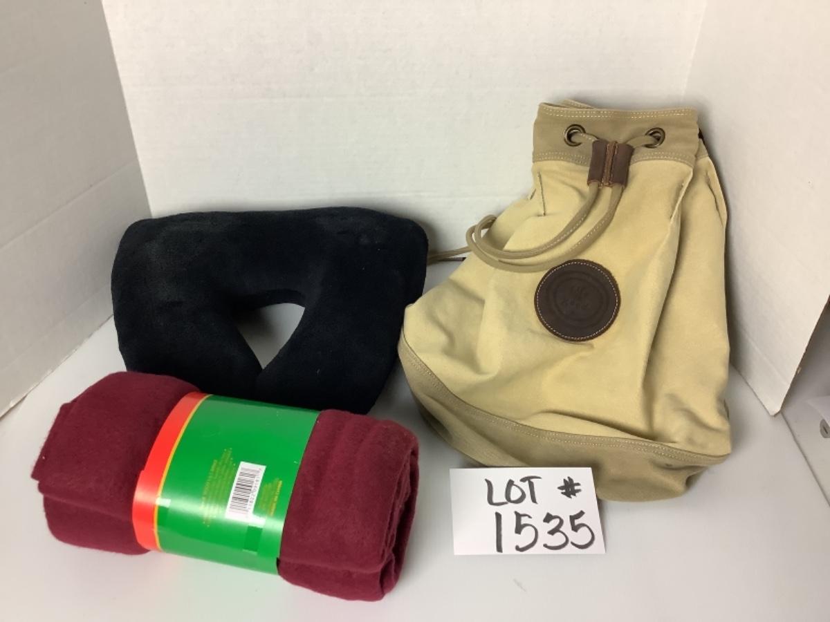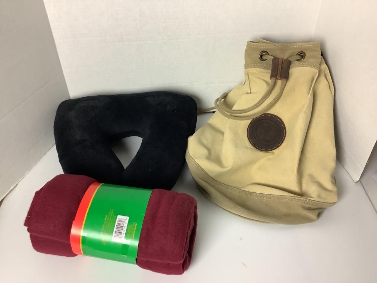 I/C1. 1535. Life Is Good Canvas Backpack/ Handbag & Travel Neck Roll & Throw