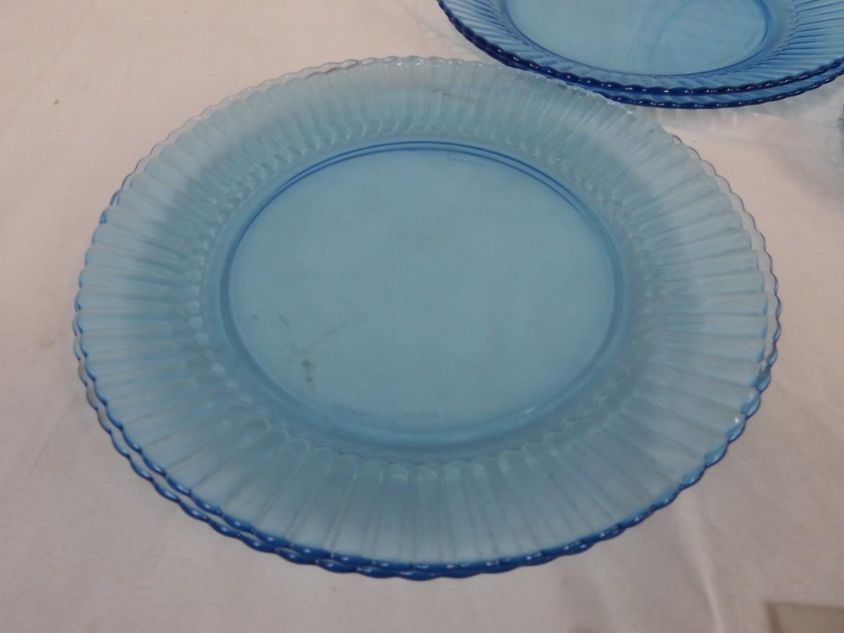 Ice Blue Mexico Glass Plates and Small Bowls Set