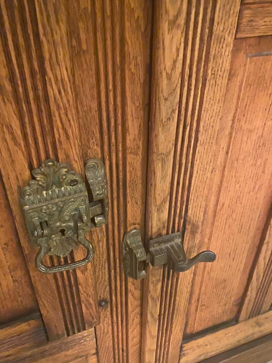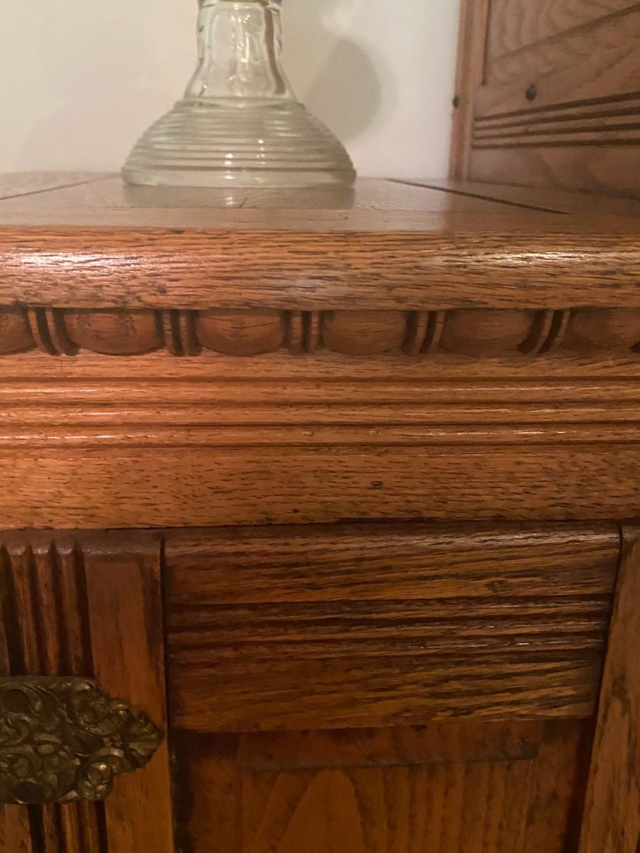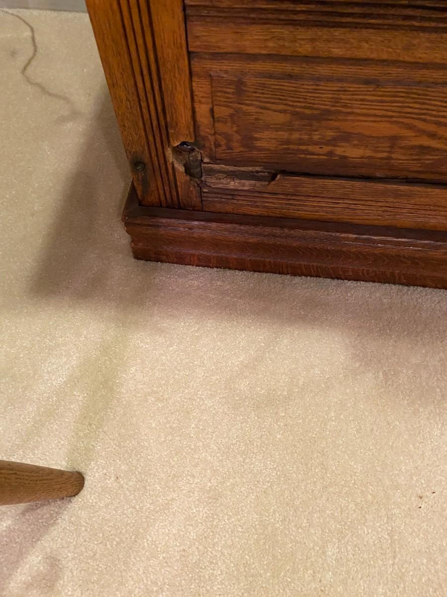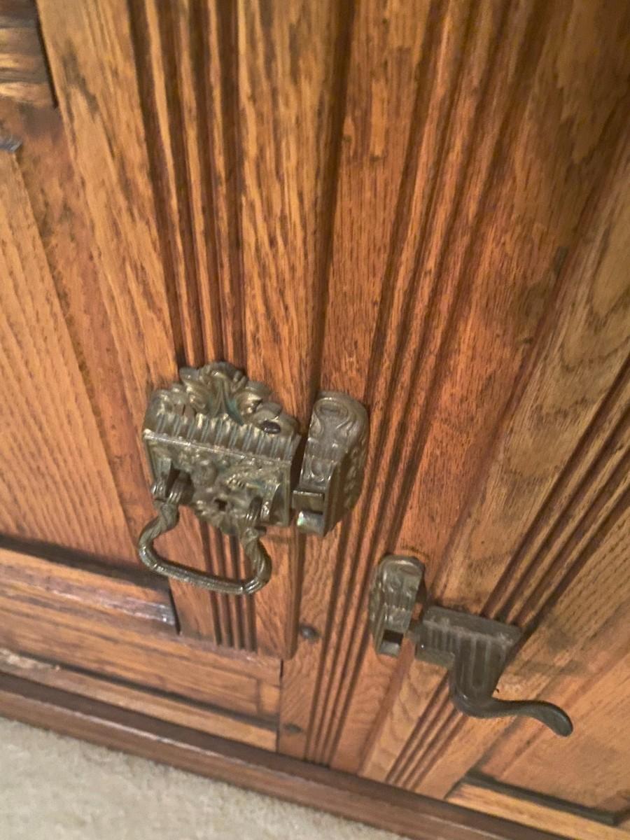 Rare item. Brown's Happy Thoughts Refrigerator Co.. 39 x 22 1/2 x 47. Bottom has soft spot, and it looks like it has rotted. Currently holds CDs.