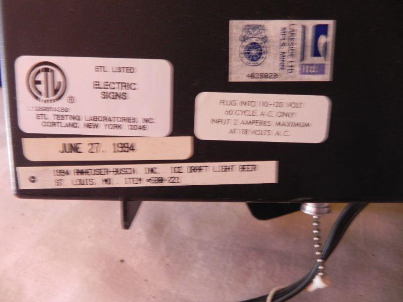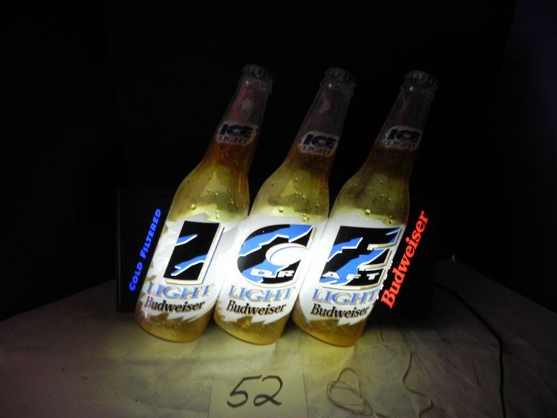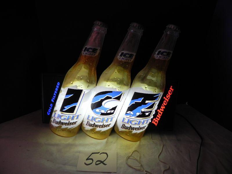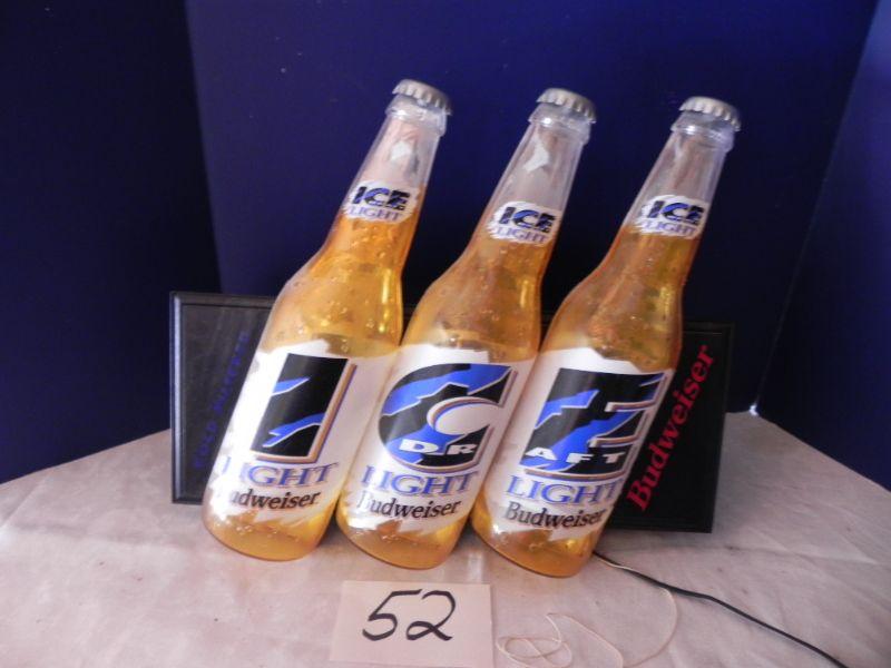 BUDWEISER ICE LIGHTBOTTLES. PULL CORD TO LIGHT UP MEASURES 21"X17"