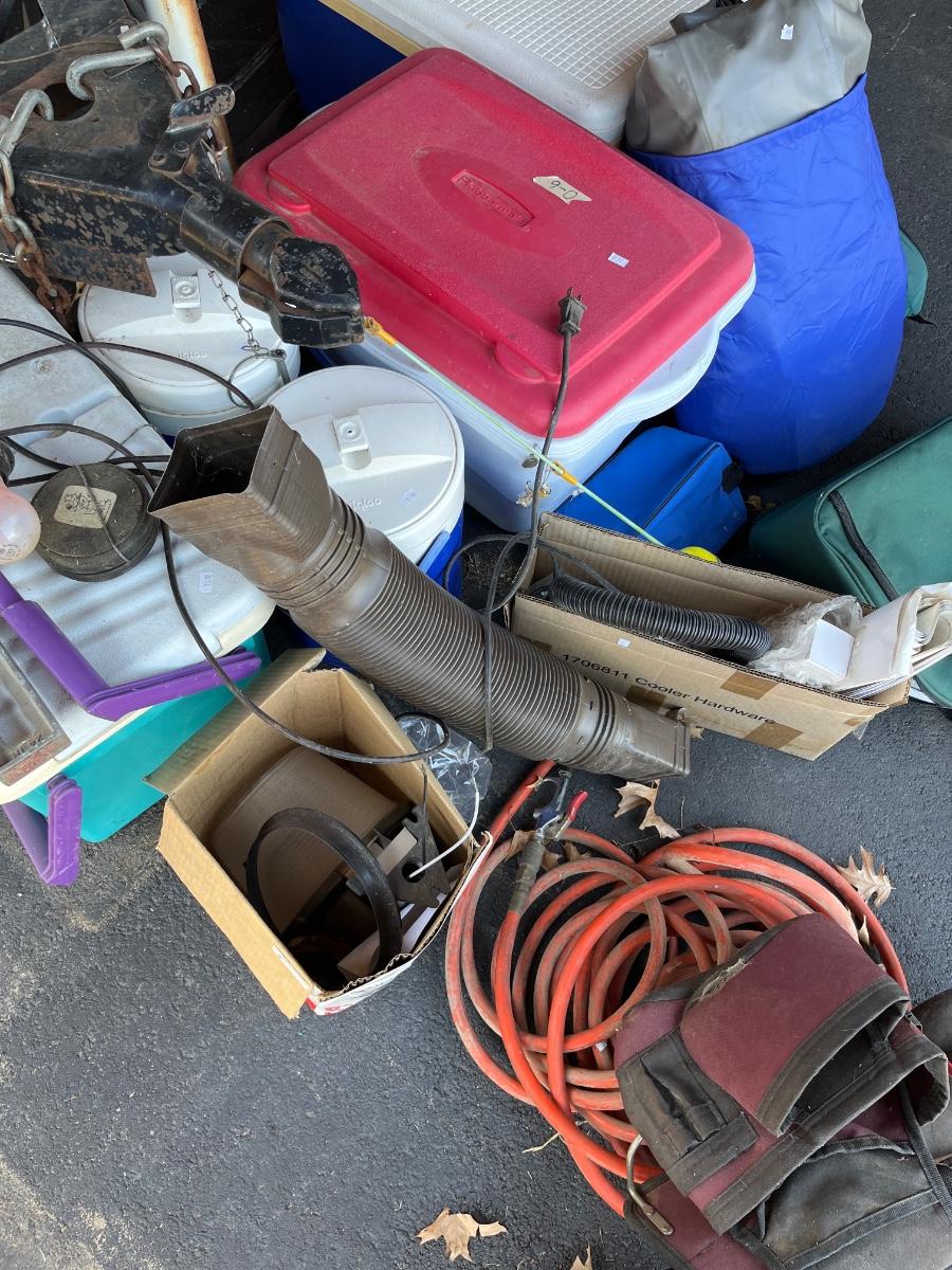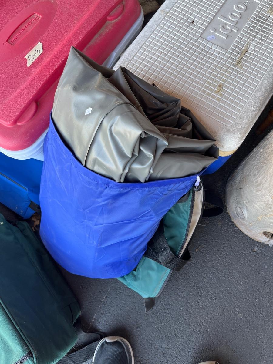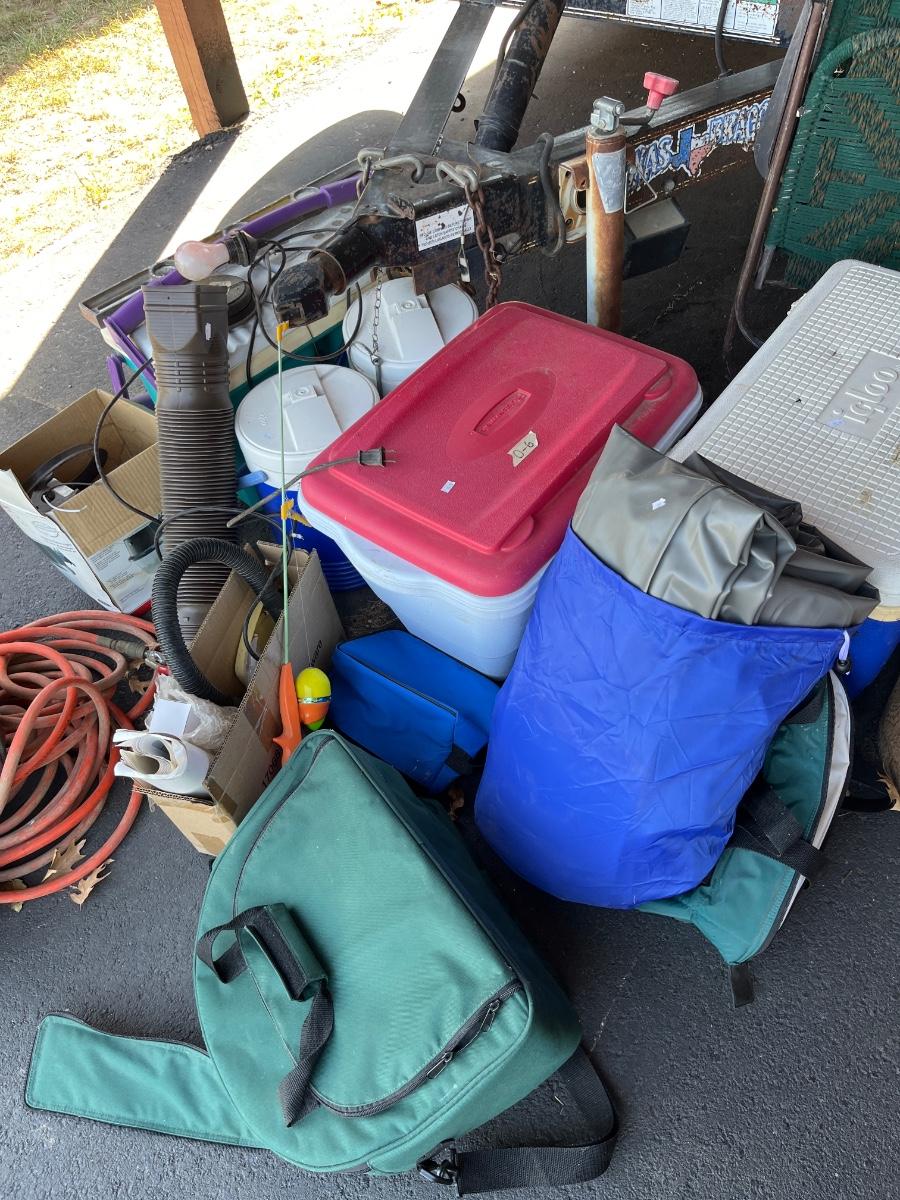 Chairs, Blowup mattress, ice chest, coolers,water jugs.