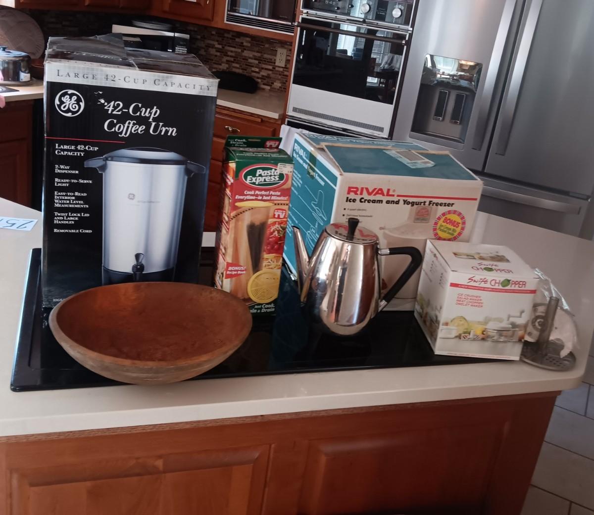 ICE CREAM AND YOGURT MAKER, COFFEE URN AND PERCOLATOR, DOUGH BOWL AND MORE