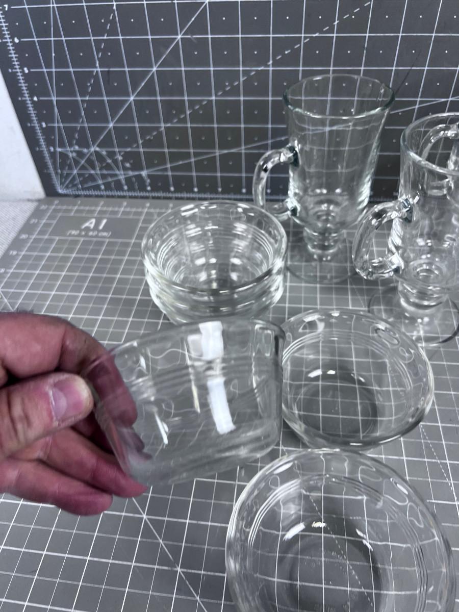 Not used really. Good Condition. Plus bonus of 3 Irish Coffee Mugs 5 Cream and 3 Mugs But wait some microwave safe custard bowls too(6) .