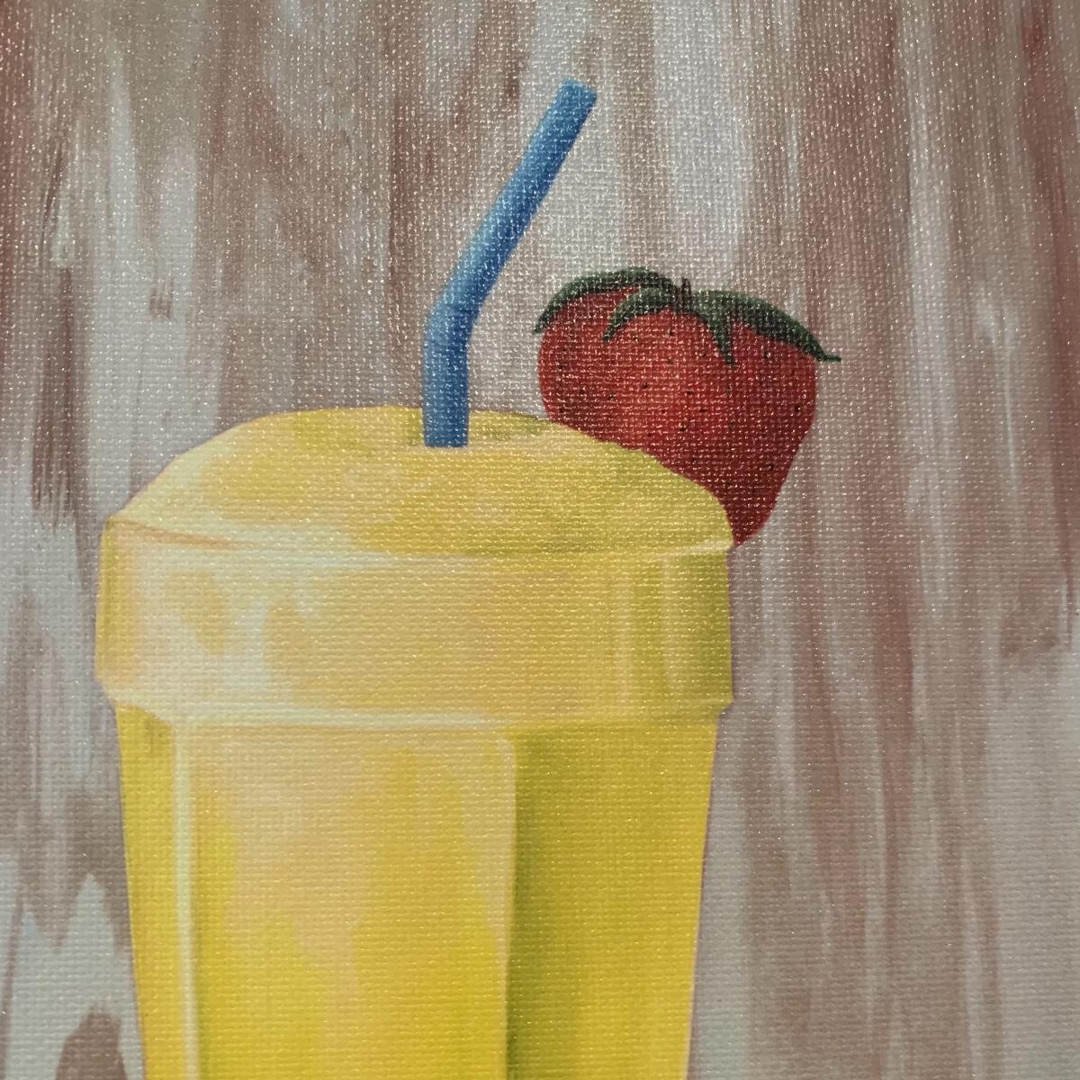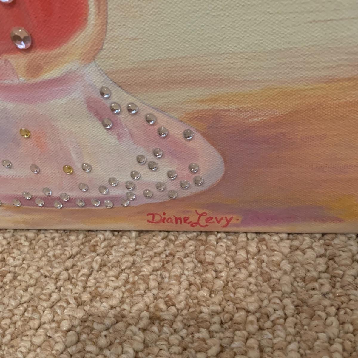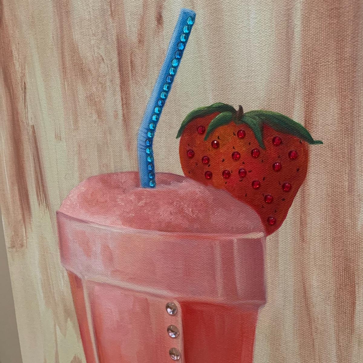 Two paintings of ice cream floats with the smaller one bing of three different flavors in acrylic on canvas and measuring 18”x12”. The larger one has some extra bling added to it and is signed by estate owner Diane Levy and measures 12” x24”. Shipping available.