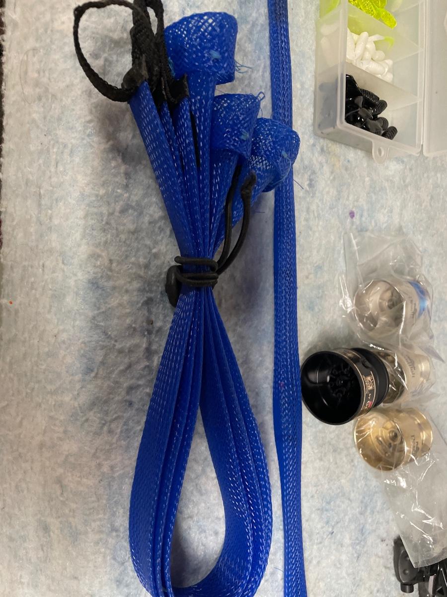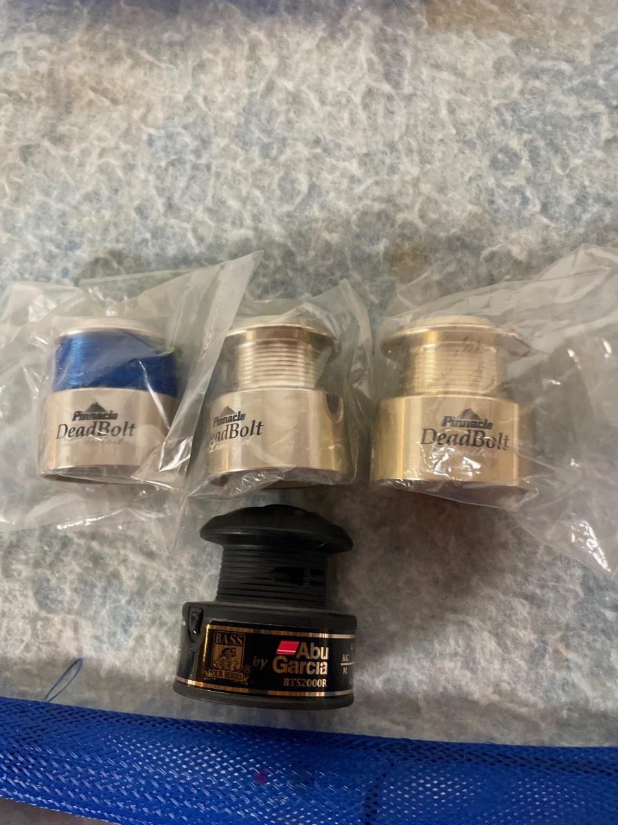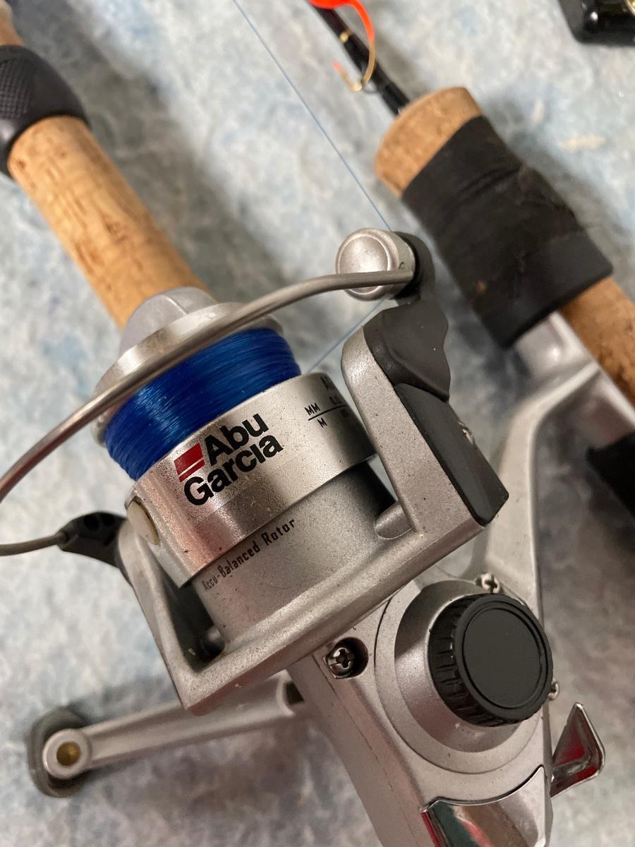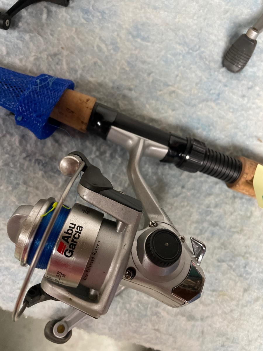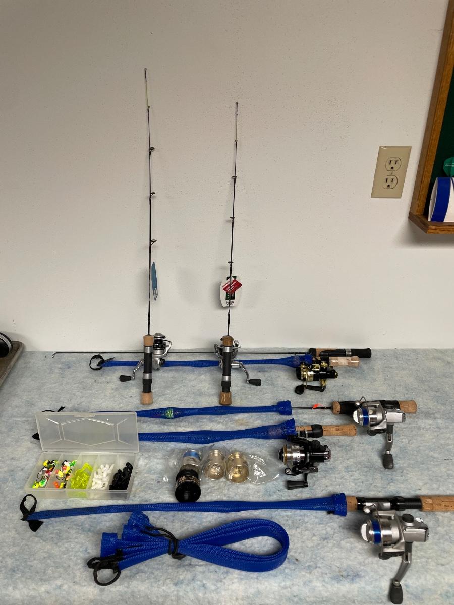 Includes 2 brand new rods and reels with tags on them, 2 other rods and reels that look brand new and two rods and reels that have been used. There is a rod by itself, blue rod covers, some tackle and 4 reel spools.