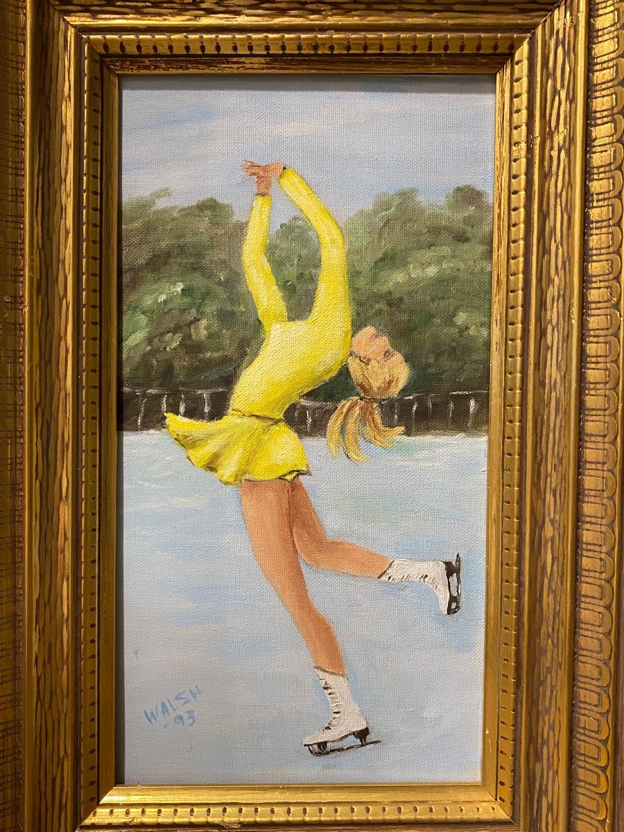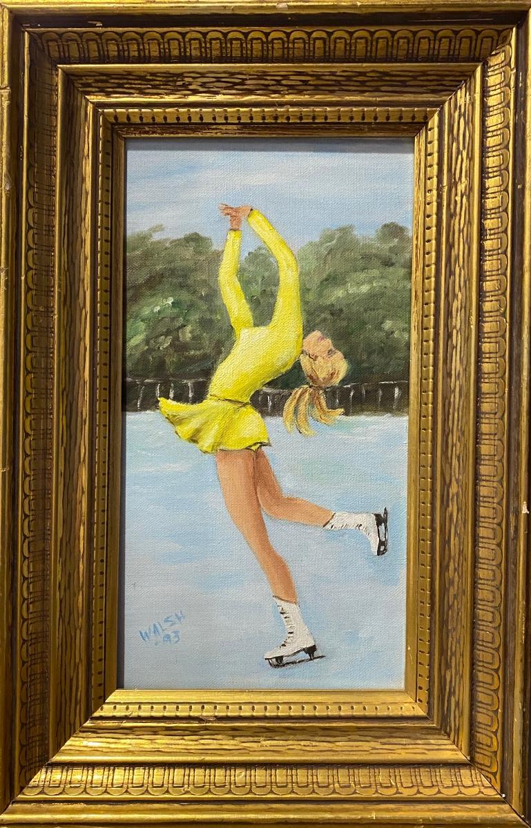 1993 Oil on Canvas, Ice Skater Art by Dorothy Walsh - 11.75" W x 17.75" T. Signed and Framed