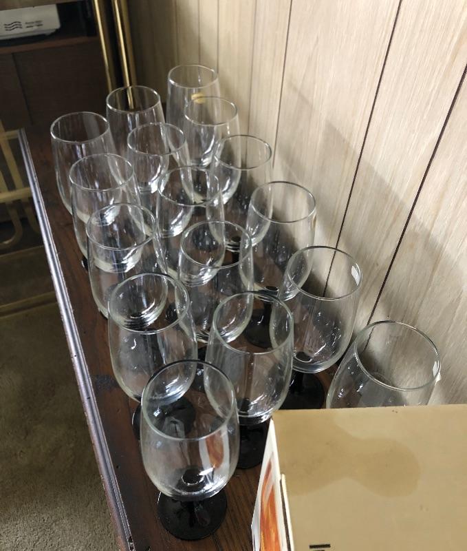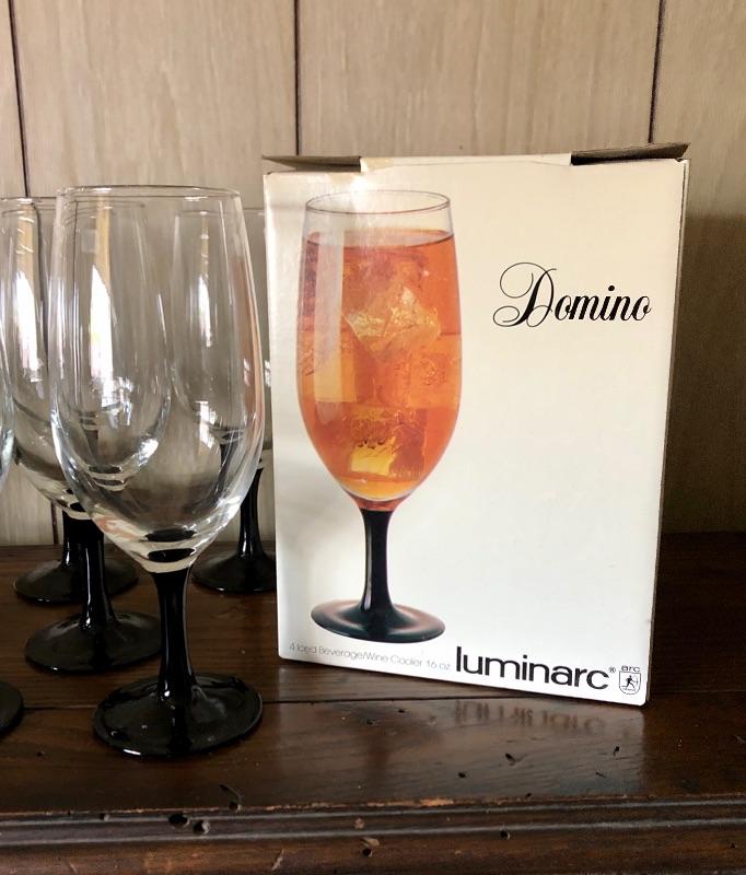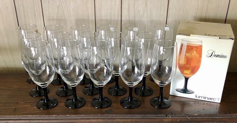 Set of 16 stemware iced tea glasses. Black stem and base. Domino style, made by Luninarc.