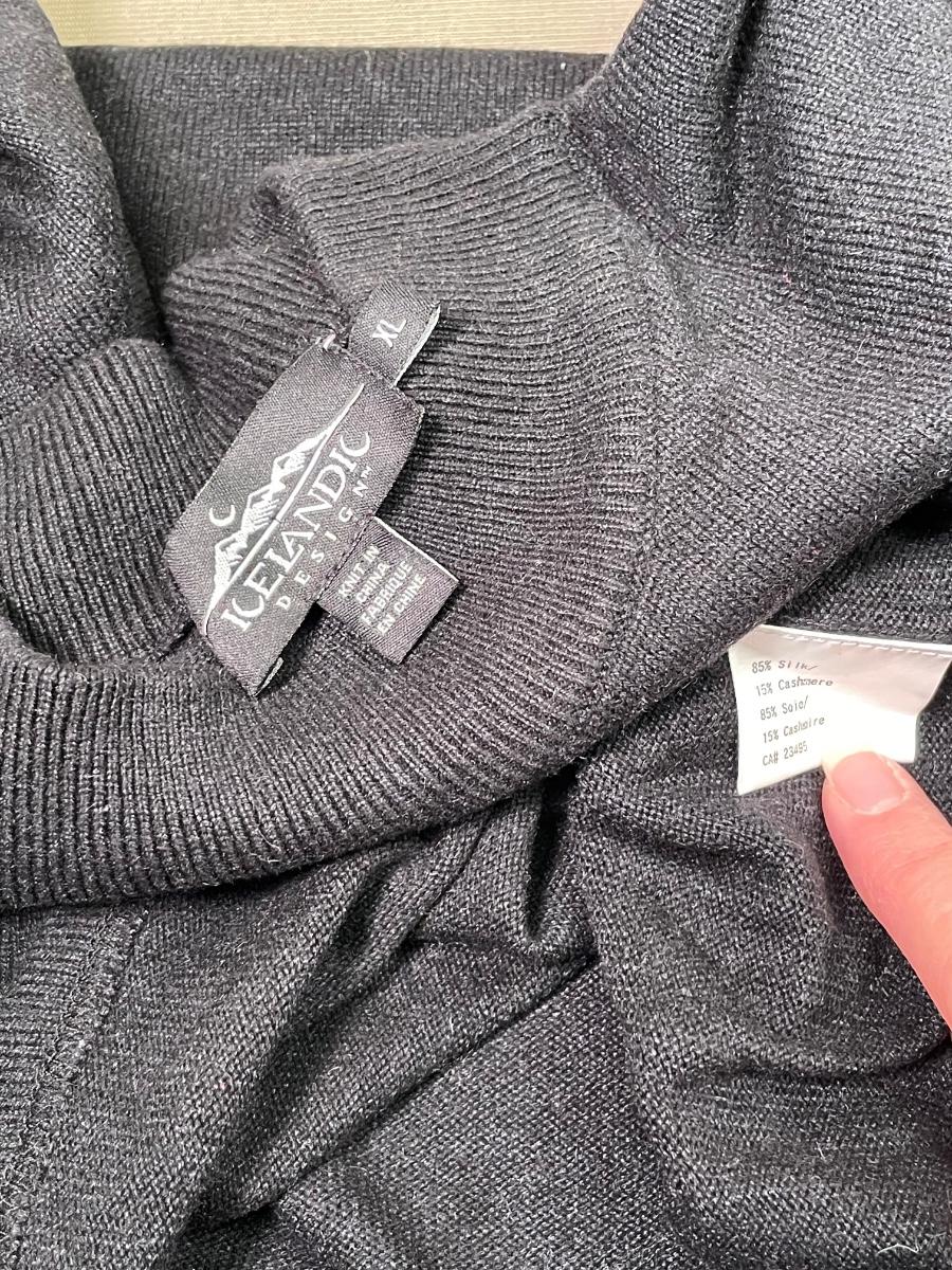 Icelandic mock neck black sweater XL Cashmere & Silk