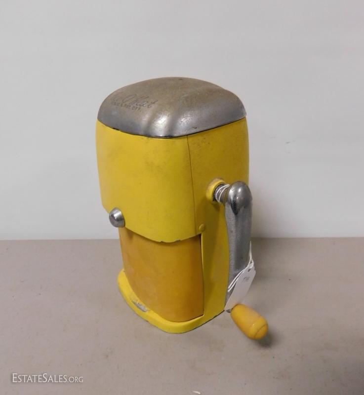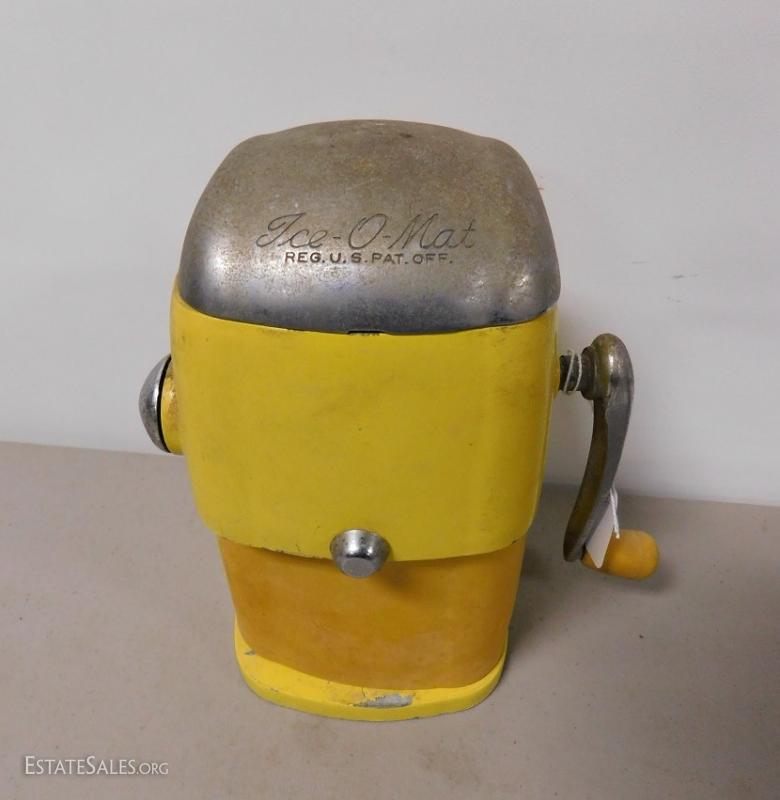 Ice-O-Mat Ice Crusher. Vouge model. All parts appear to be present. Handle needs to be re-connected to the internal gears. Heavy Cast and metal construction.