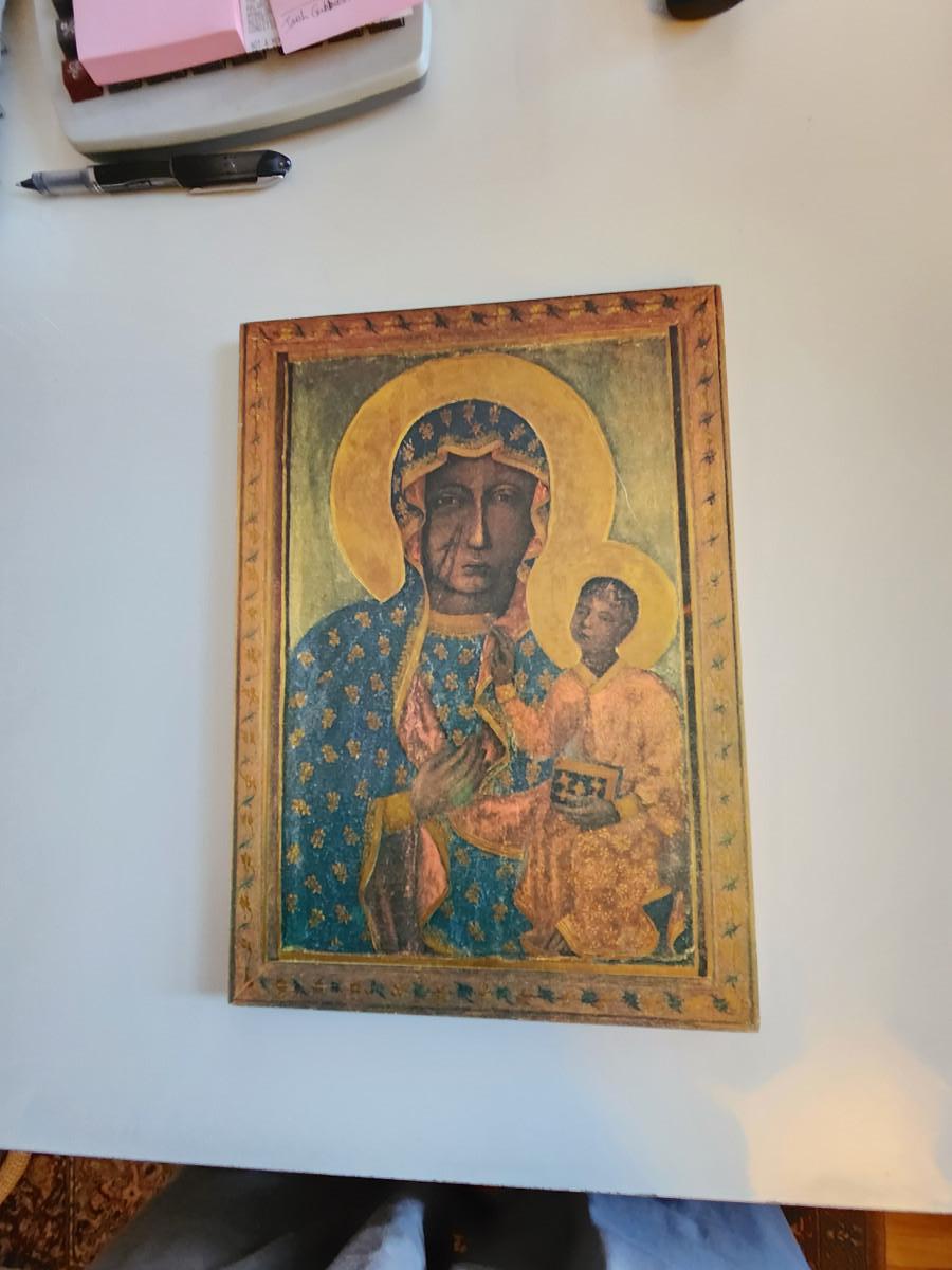 This auction lot is for an Icon of the Black Madonna with Child. This nice rendition is printed on paper and fused to a heavy board. See photo for measurement. Great example of the art.