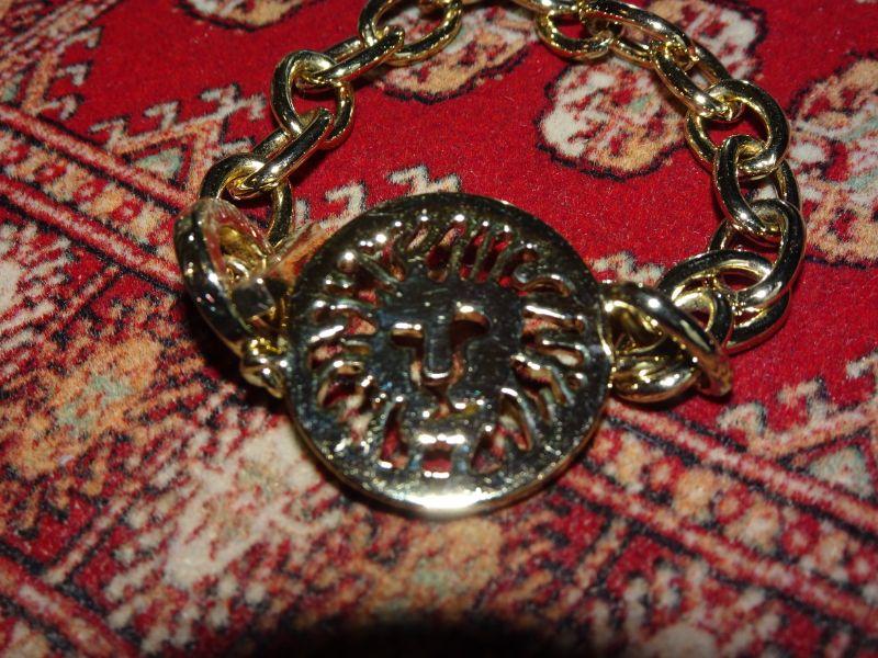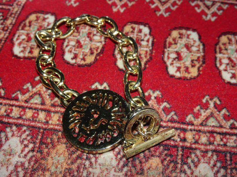 Iconic ANNE KLEIN Signature LION's Head Logo Charm Carved Gold Metal Bracelet