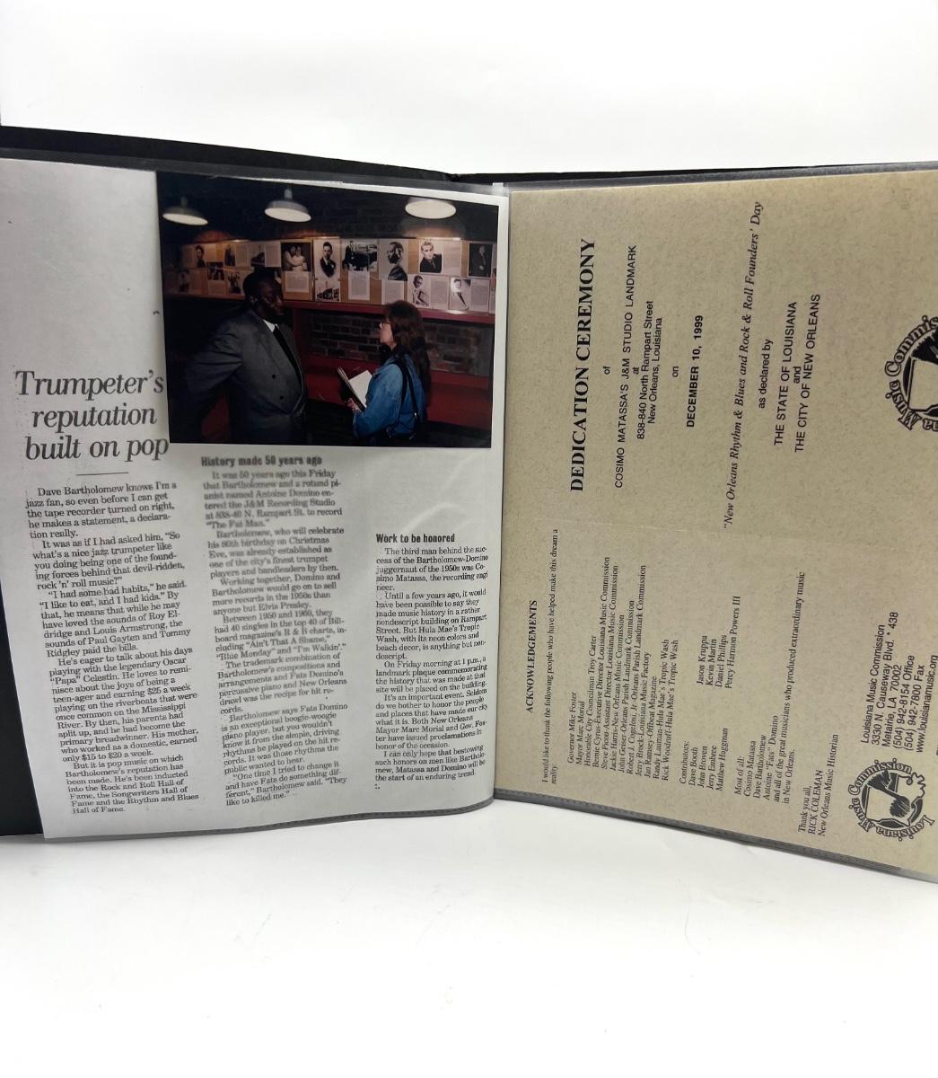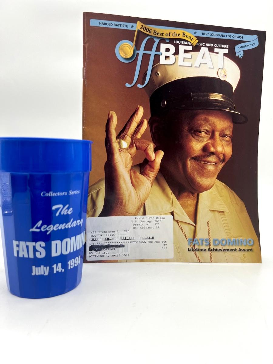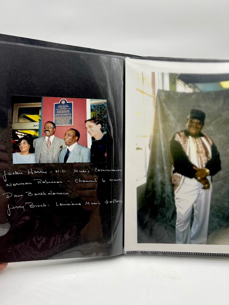New Orleans Iconic FAT’S DOMINO Commemoration Lot. Includes a hand written note & autograph he gifted a nurse while in the hospital. Also includes pictures and stories about events from employees of J & M Music Shop.