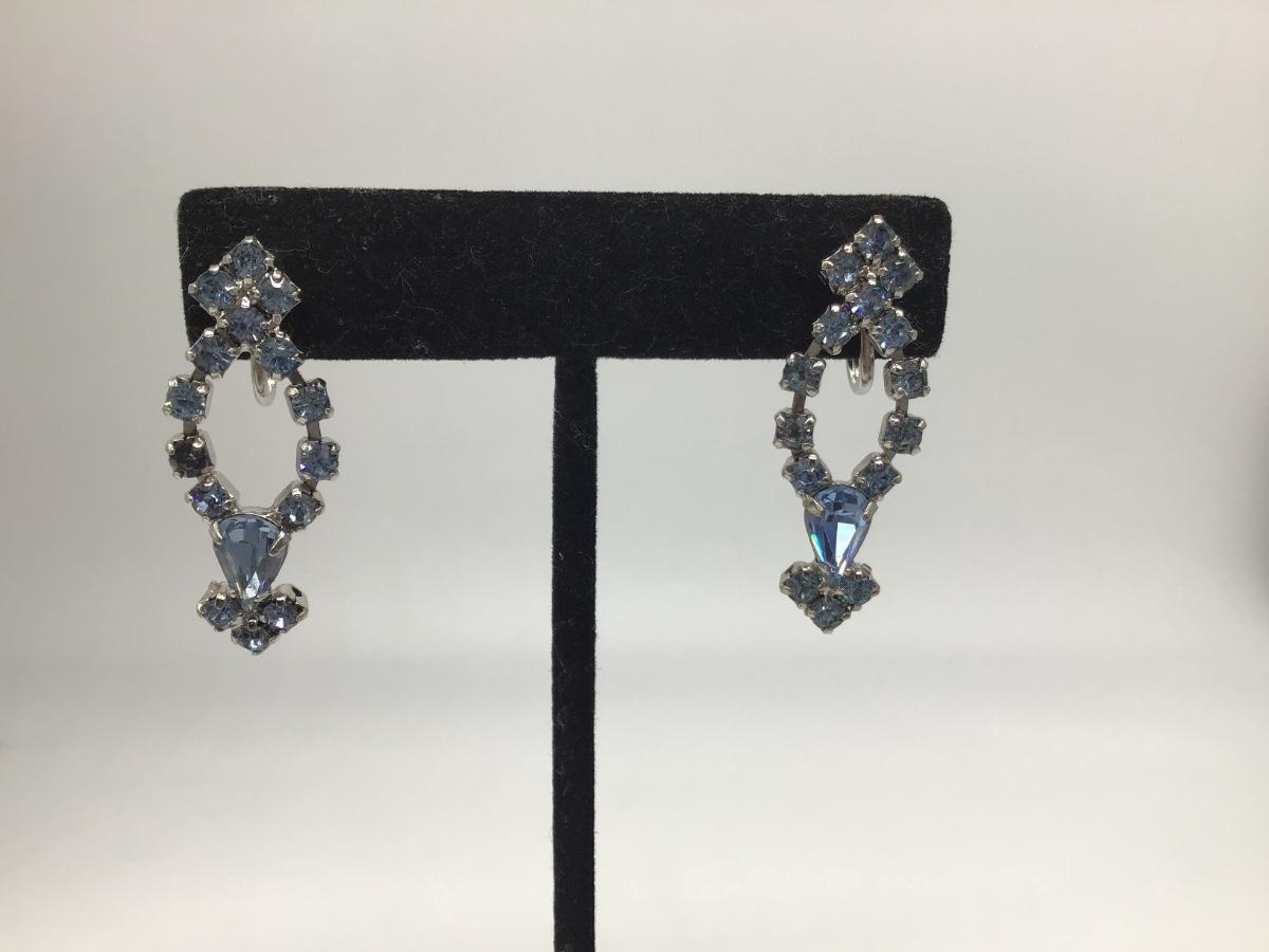 Icy blue rhinestone earrings screw on