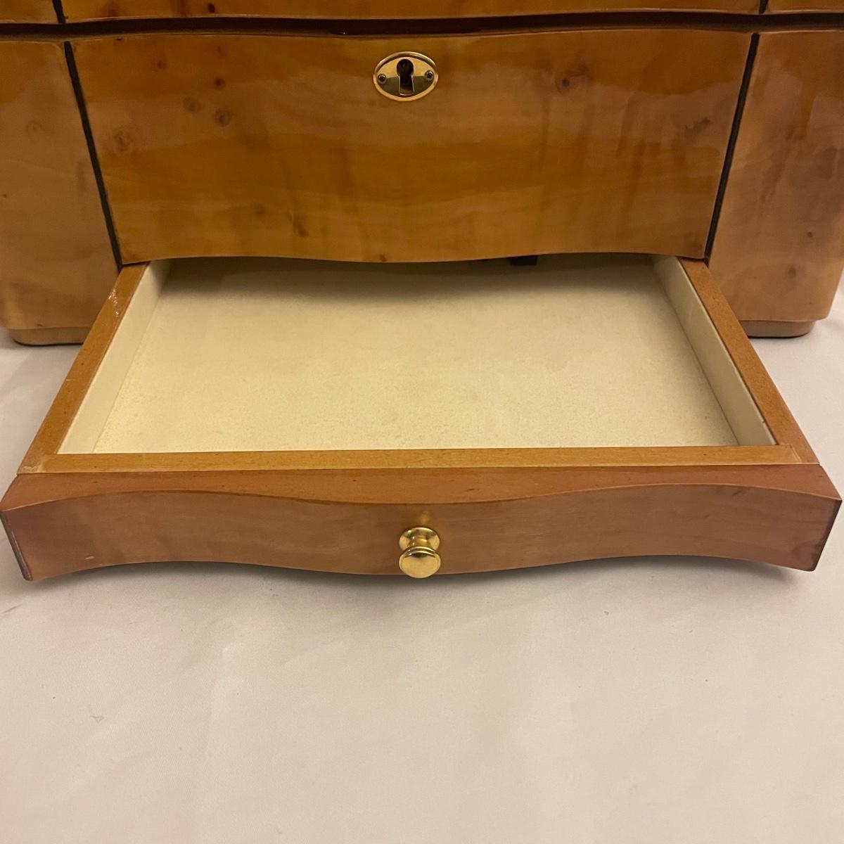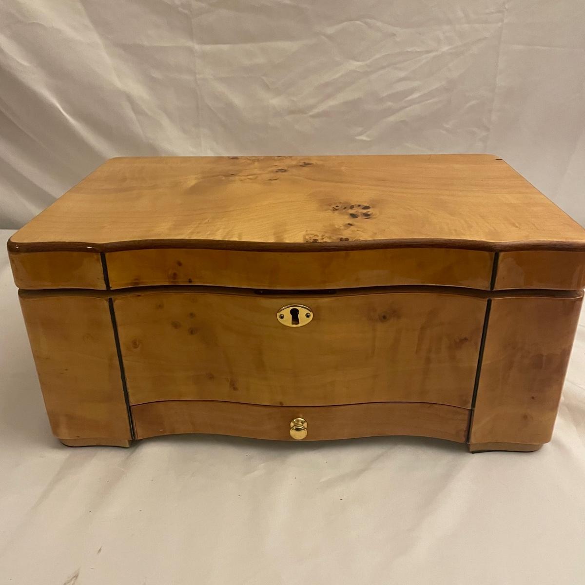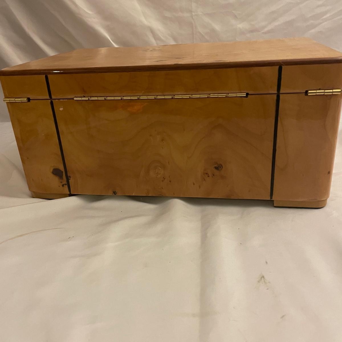 This IDC cedar lined humidor comes with keys and measures 15” x 9.5” x 7”. All parts are included.