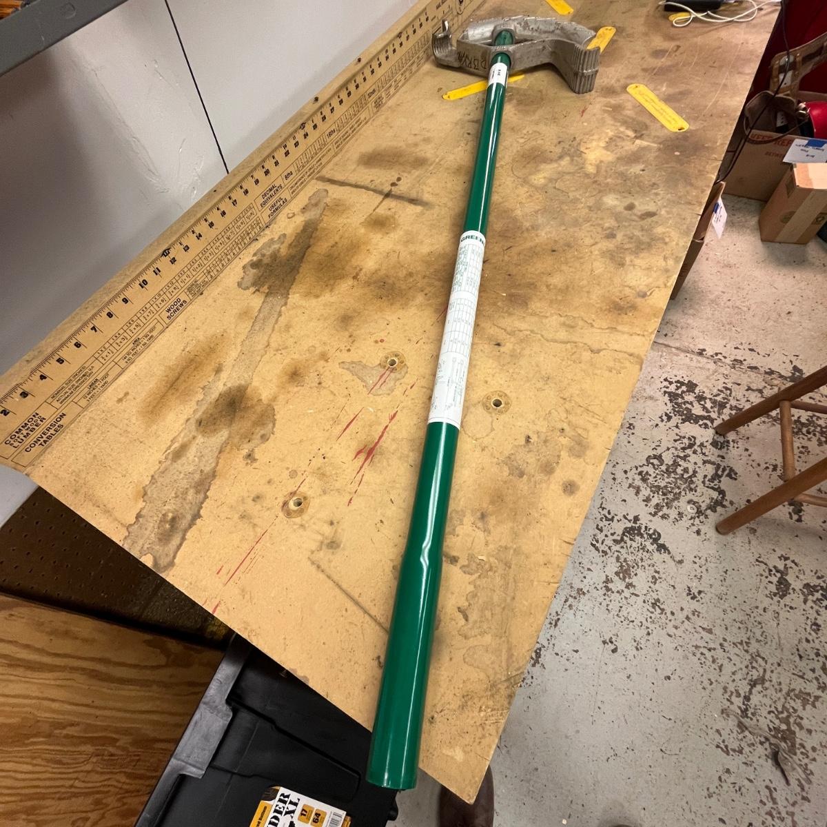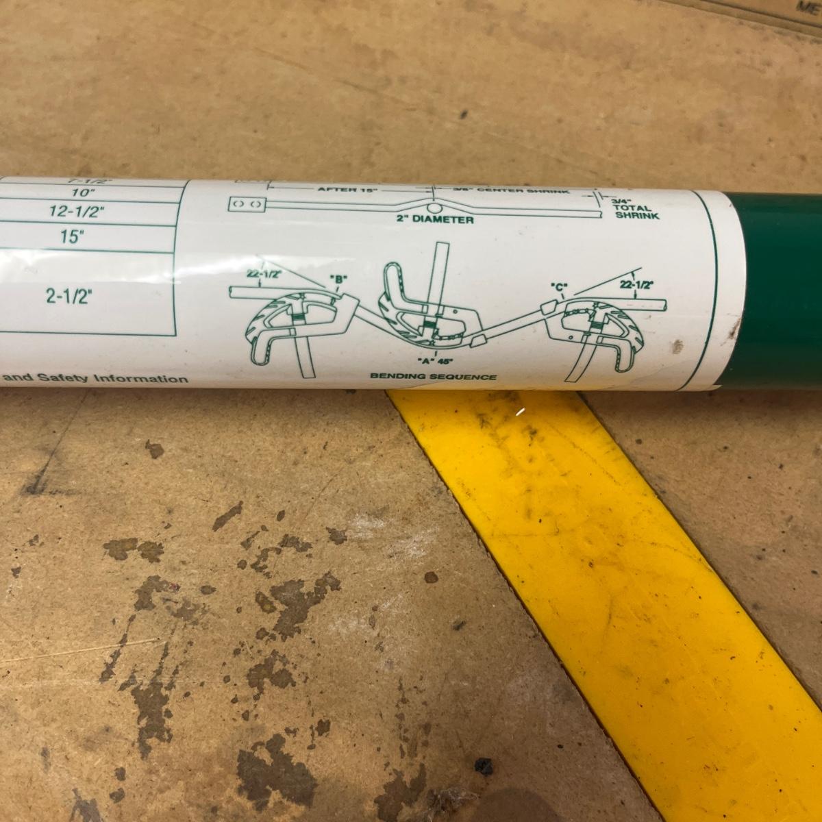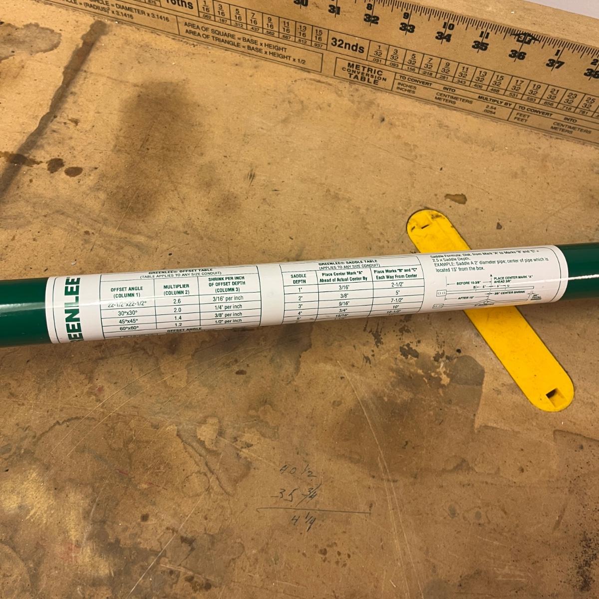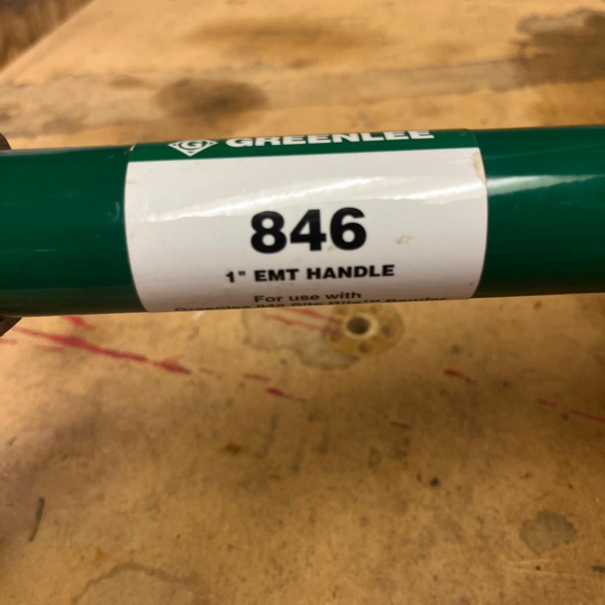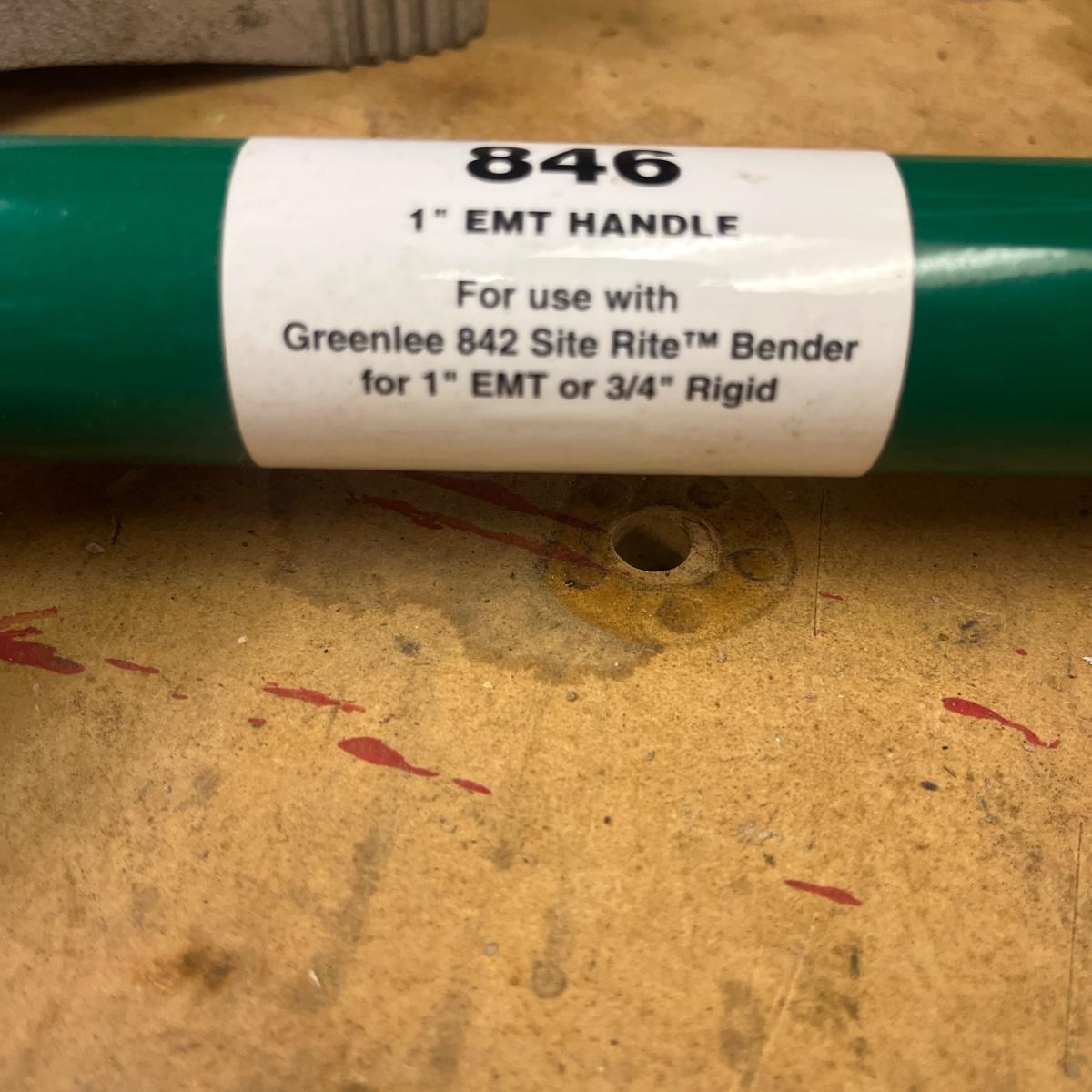 Lot includes an Ideal 1” conduit bender with a Greenlee 846 handle. Both pieces together measure 13” x 2” x 45.5” long.