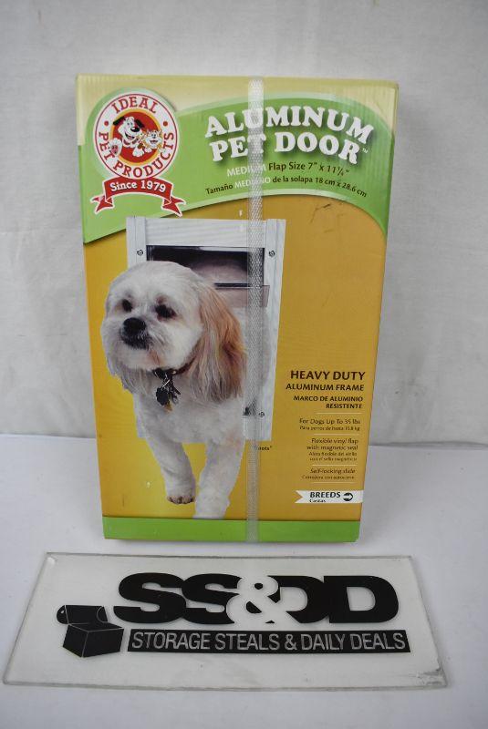 Ideal Deluxe Aluminum Dog Door, White, Medium, 2.12"L x 9.94"W x 15"H, $37 Retail - New