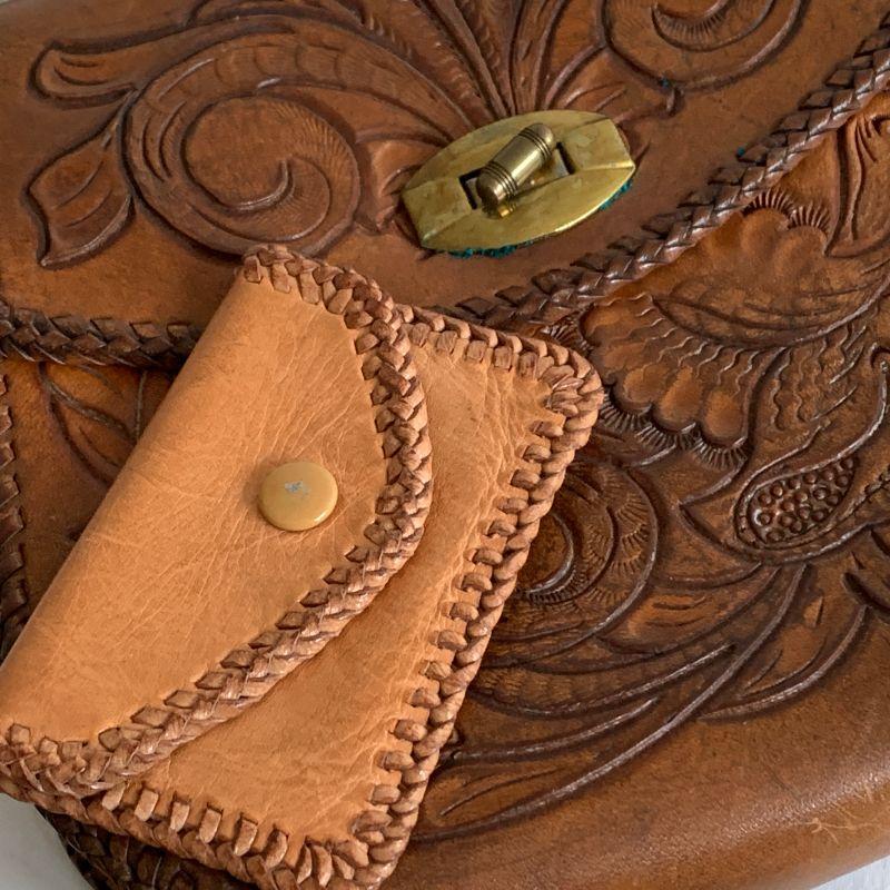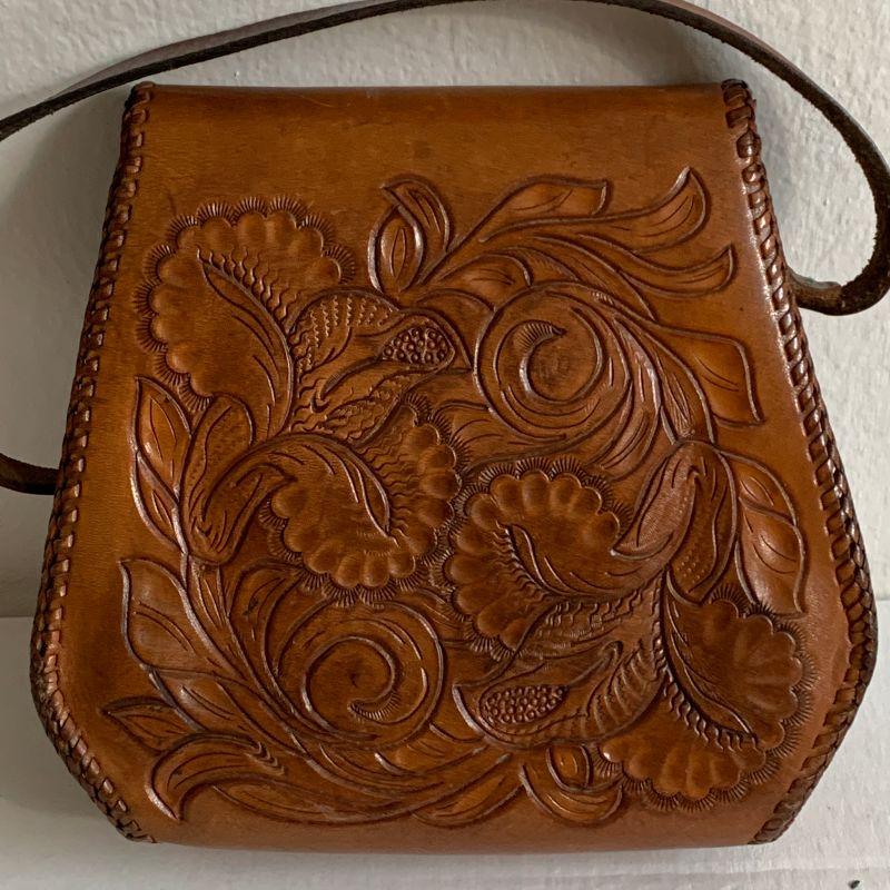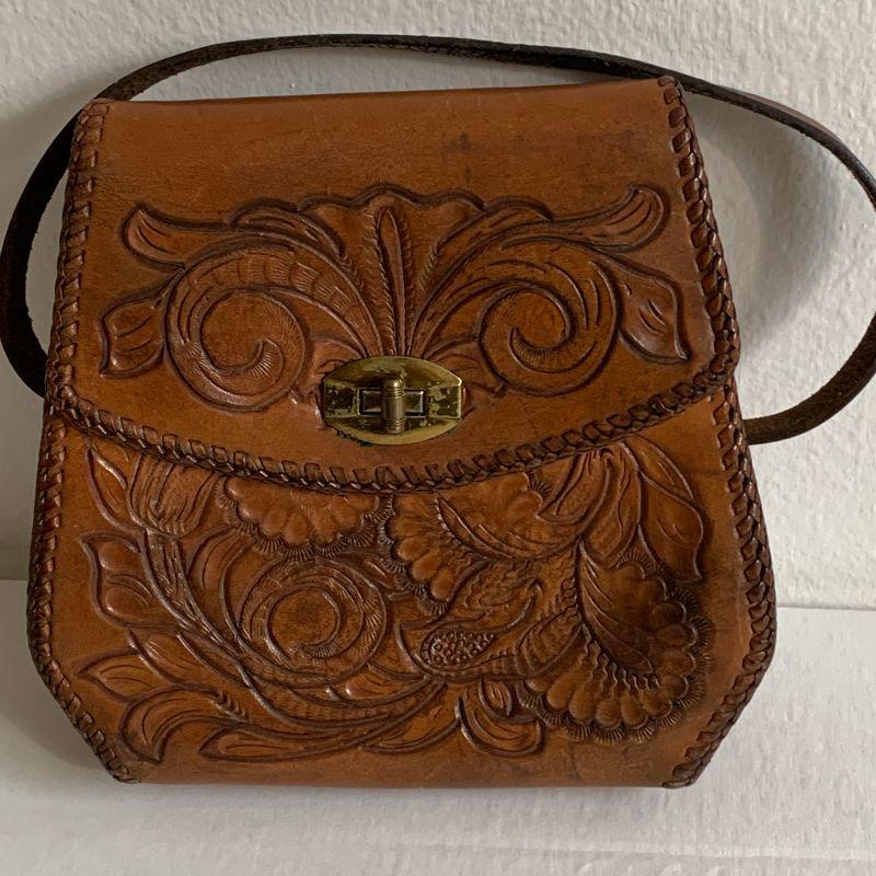 IDT  17  VINTAGE HAND TOOLED LEATHER SHOULDER BAG