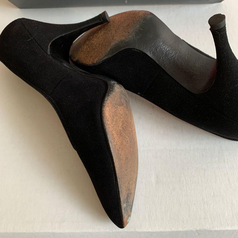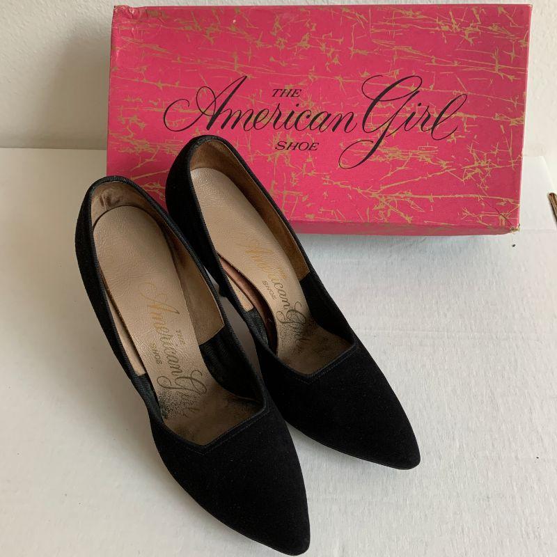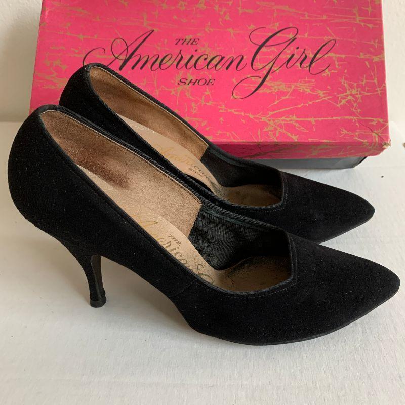 IDT 25 VINTAGE AMERICAN GIRL BLACK SUEDE POINTY TOE HIGH HEELS w/SHOE BOX SIZE 6
