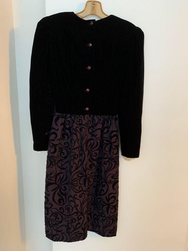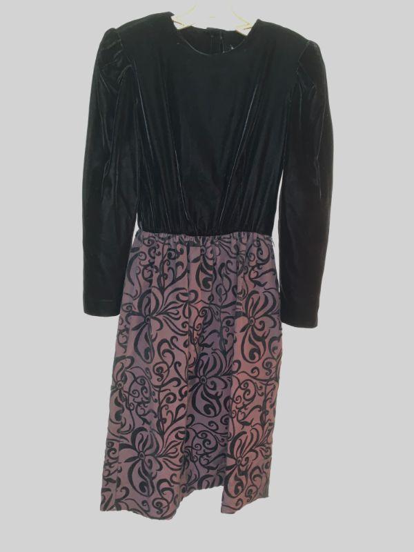 IDT 31  VINTAGE VELVET LONG SLEEVE BODICE OVER FLOCKED VELVET SOFTLY GATHERED SKIRT.