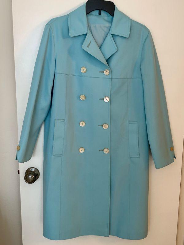 Forecaster of Boston Vintage raincoat. Size 8 double breasted, mock belt in back.