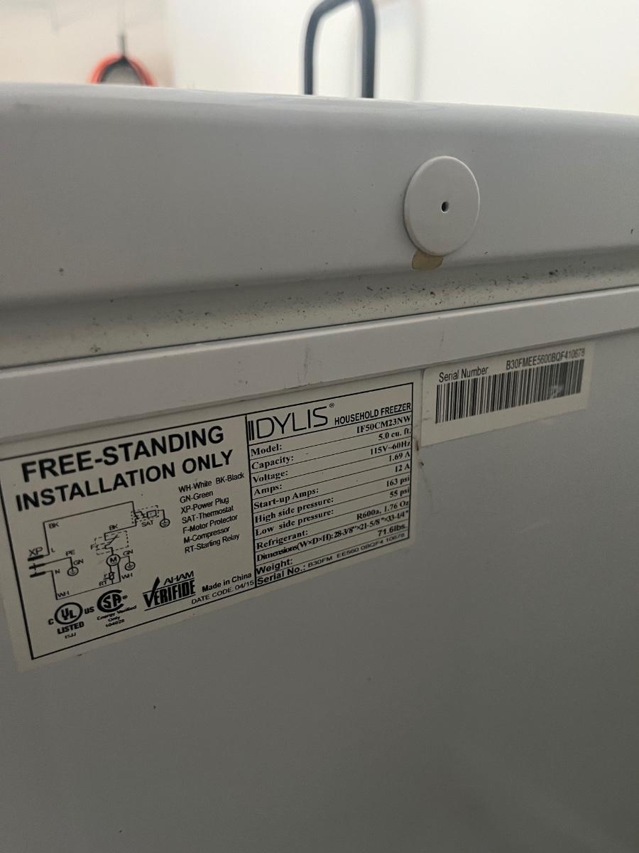 Lot includes a Idylis 7.1 Cubic feet chest freezer. Freezer powered on when plugged in. Chest measures 22” x 28.5” x 33.5”H.