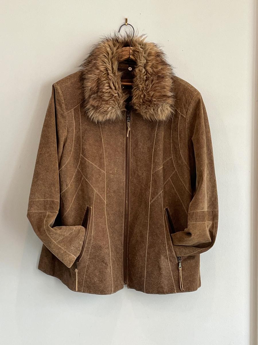 I.E. RELAXED WOMAN ~ Women’s 2X ~ Brown Leather Jacket With Fur Lined Collar