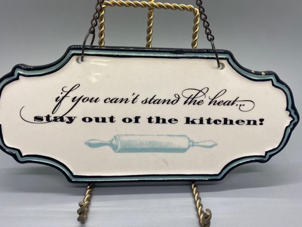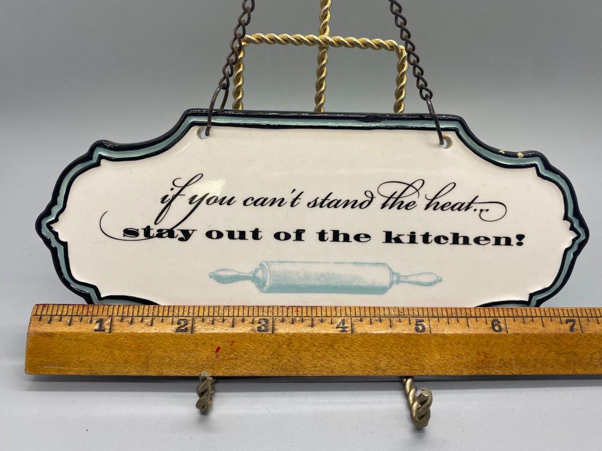 If You Can't Stand the Heat.. Stay Out of the Kitchen ceramic hanging wall plaque. Good condition, about 7" size.