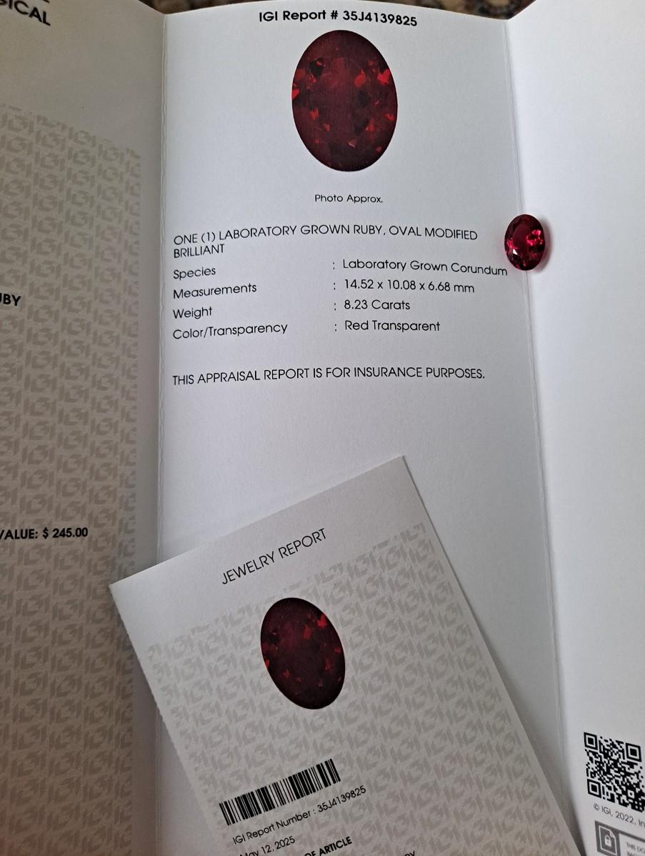 IGI CERTIFIED LAB GROWN RUBY 8.23 CTS